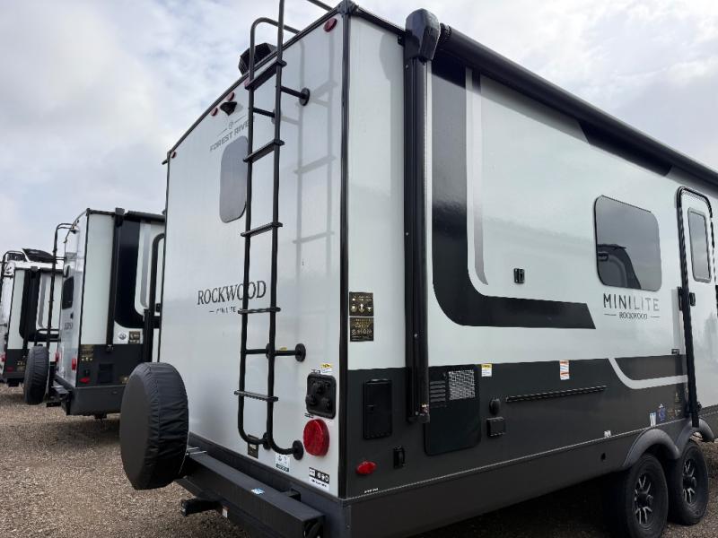 Each Rockwood Mini Lite travel trailer by Forest River is constructed with a fully laminated one-piece walkable roof, sleek frameless windows, and a six-sided full aluminum frame for strength and durability. The 12V thermostatically controlled heated tanks, plus radiant foil in the underbelly will allow you to camp well into the colder months, and the 200W roof solar panel will be perfect for a little off-gridding. Each model includes solid surface kitchen countertops, hidden hinge cabinet doors, roller shades, plus many more interior features. Having an AIR 360+ omnidirectional antenna with WiFi prep on board gives you the option to get some work done if it's needed, and the power tongue jack provides hassle-free set up, so you can enjoy more time relaxing!