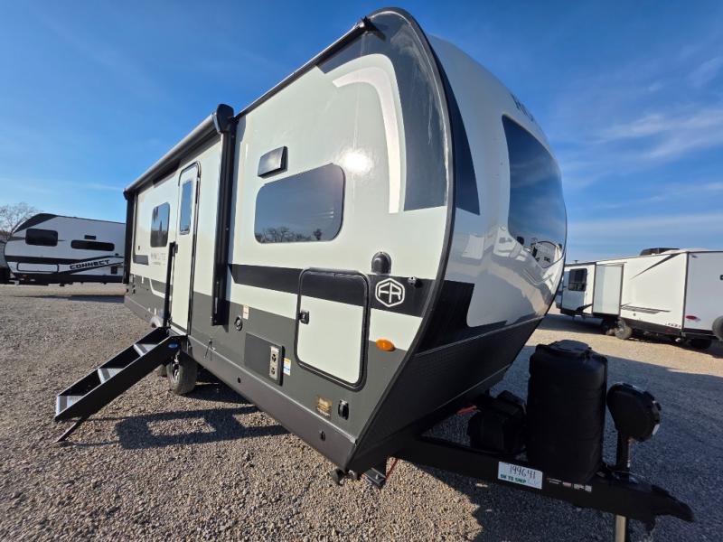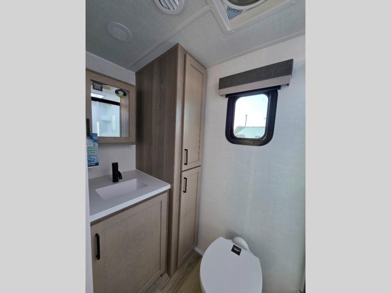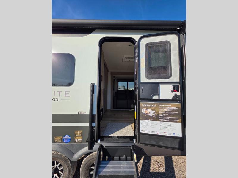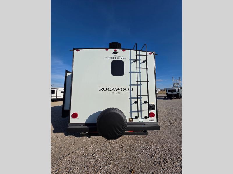 Each Rockwood Mini Lite travel trailer by Forest River is constructed with a fully laminated one-piece walkable roof, sleek frameless windows, and a six-sided full aluminum frame for strength and durability. The 12V thermostatically controlled heated tanks, plus radiant foil in the underbelly will allow you to camp well into the colder months, and the 200W roof solar panel will be perfect for a little off-gridding. Each model includes solid surface kitchen countertops, hidden hinge cabinet doors, roller shades, plus many more interior features. Having an AIR 360+ omnidirectional antenna with WiFi prep on board gives you the option to get some work done if it's needed, and the power tongue jack provides hassle-free set up, so you can enjoy more time relaxing!