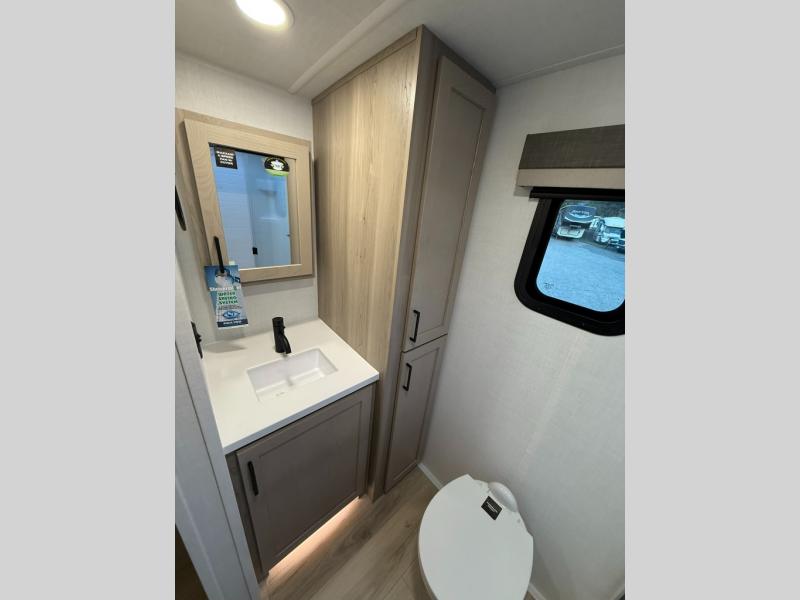 Each Rockwood Mini Lite travel trailer by Forest River is constructed with a fully laminated one-piece walkable roof, sleek frameless windows, and a six-sided full aluminum frame for strength and durability. The 12V thermostatically controlled heated tanks, plus radiant foil in the underbelly will allow you to camp well into the colder months, and the 200W roof solar panel will be perfect for a little off-gridding. Each model includes solid surface kitchen countertops, hidden hinge cabinet doors, roller shades, plus many more interior features. Having an AIR 360+ omnidirectional antenna with WiFi prep on board gives you the option to get some work done if it's needed, and the power tongue jack provides hassle-free set up, so you can enjoy more time relaxing!
