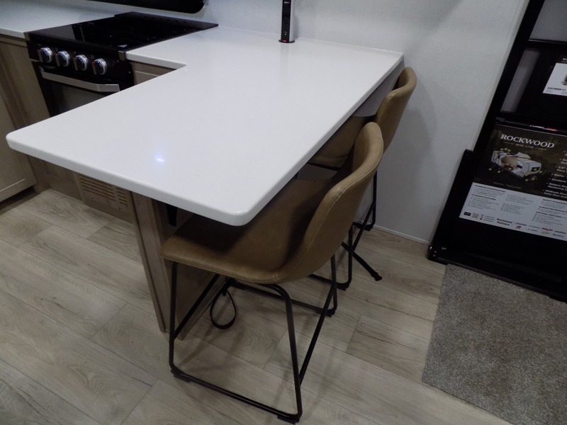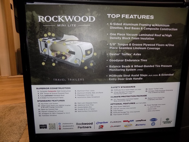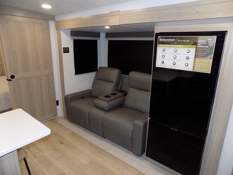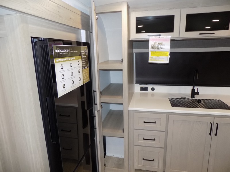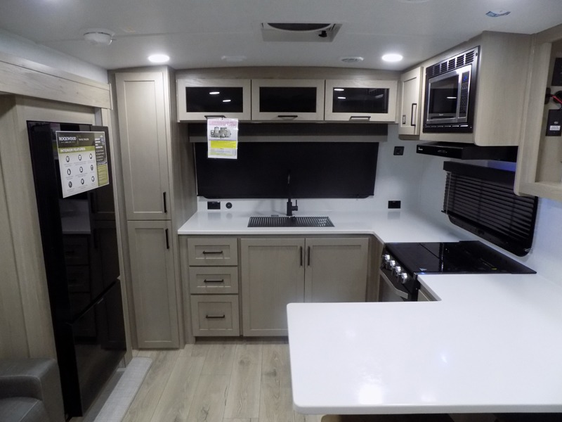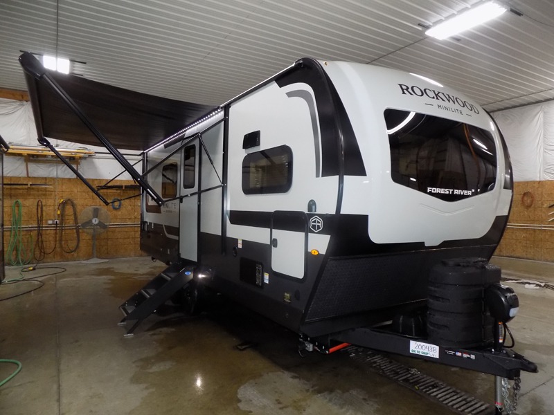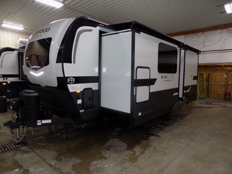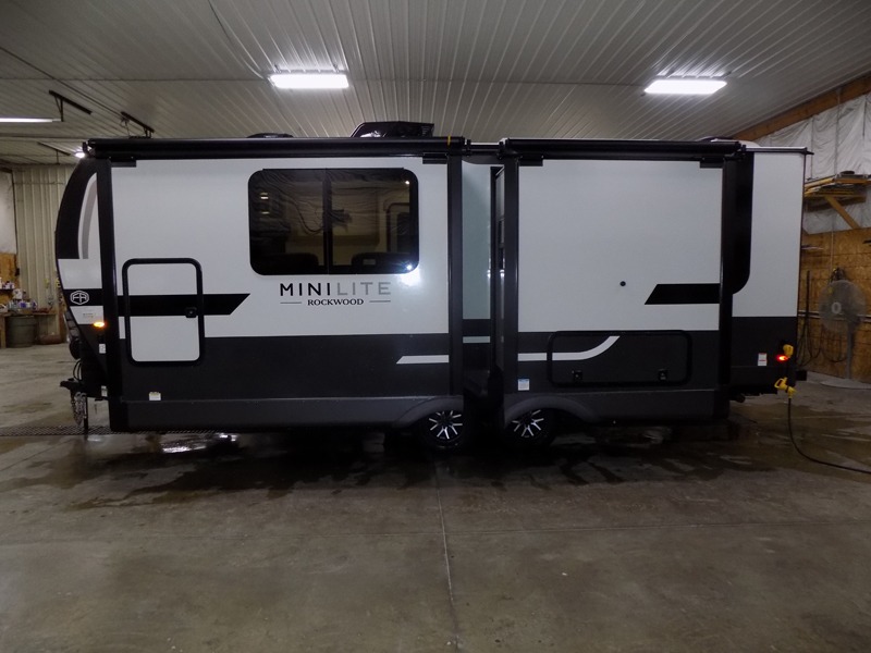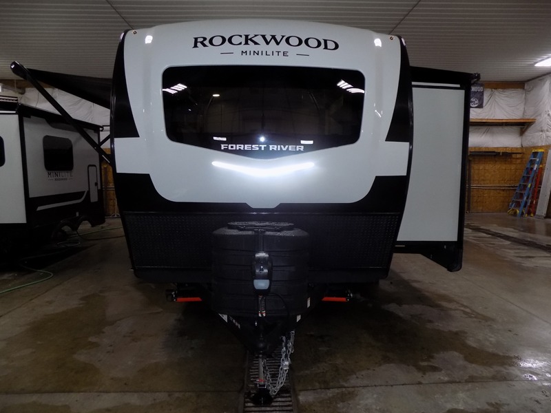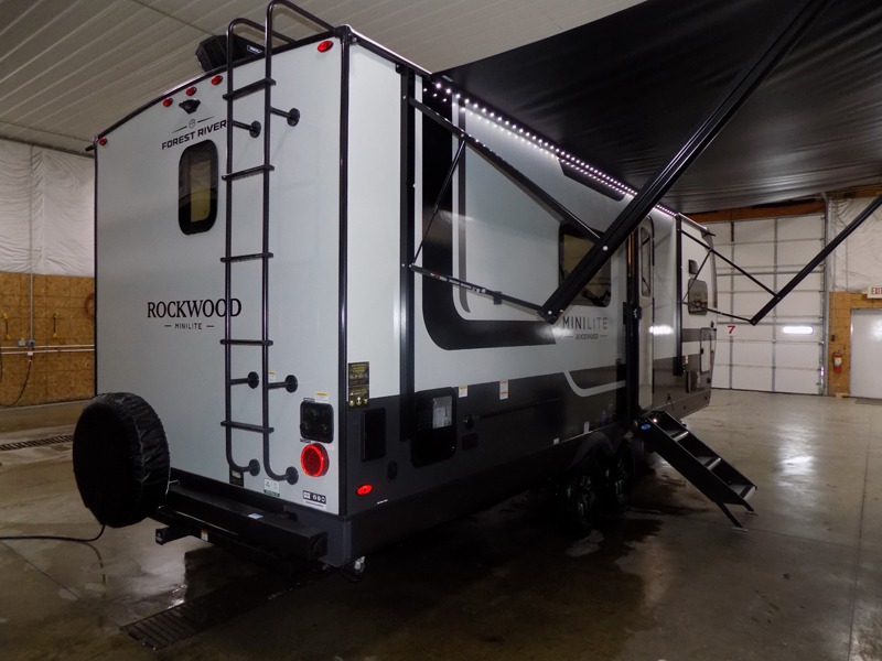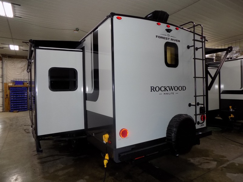 Each Rockwood Mini Lite travel trailer by Forest River is constructed with a fully laminated one-piece walkable roof, sleek frameless windows, and a six-sided full aluminum frame for strength and durability. The 12V thermostatically controlled heated tanks, plus radiant foil in the underbelly will allow you to camp well into the colder months, and the 200W roof solar panel will be perfect for a little off-gridding. Each model includes solid surface kitchen countertops, hidden hinge cabinet doors, roller shades, plus many more interior features. Having an AIR 360+ omnidirectional antenna with WiFi prep on board gives you the option to get some work done if it's needed, and the power tongue jack provides hassle-free set up, so you can enjoy more time relaxing!
