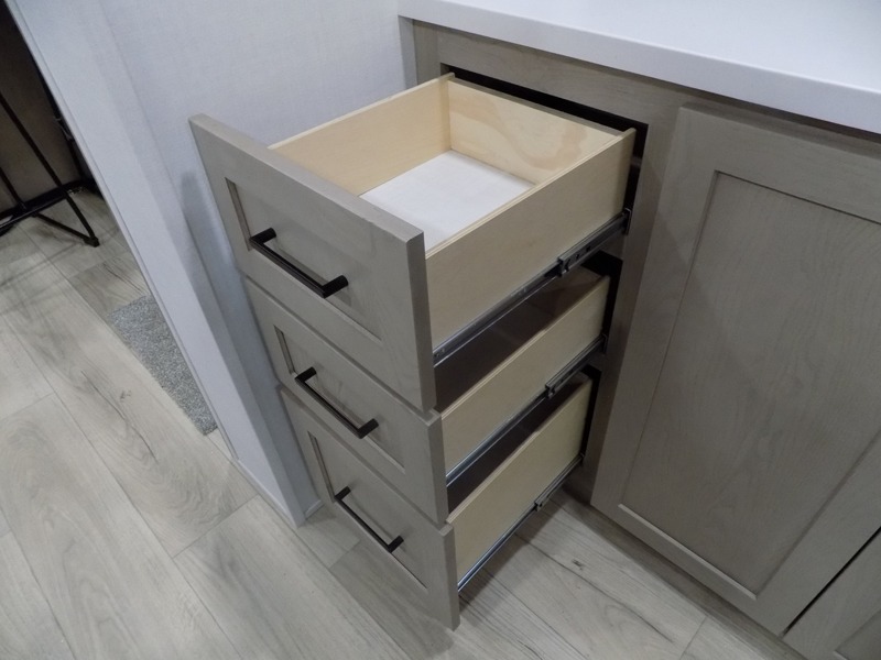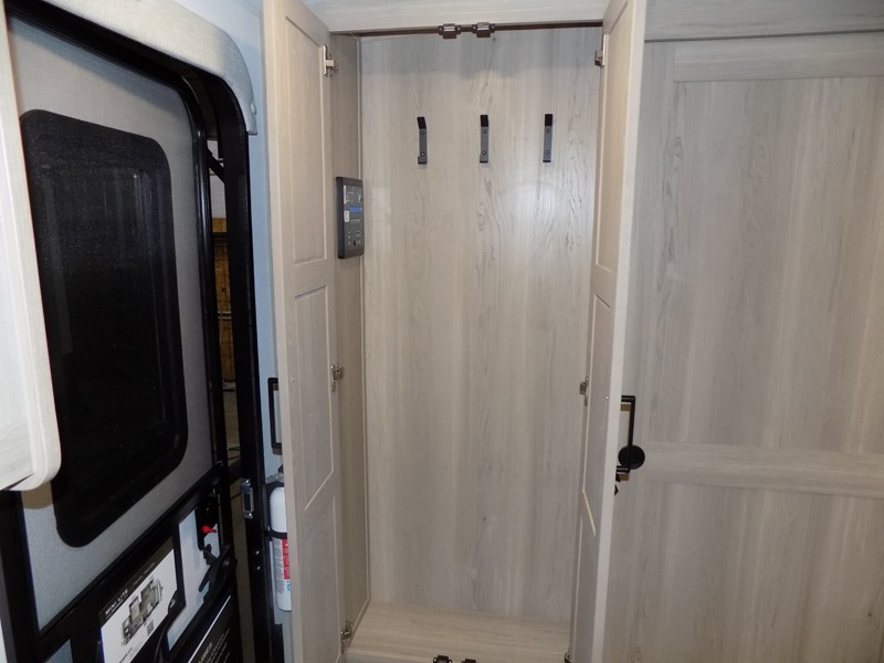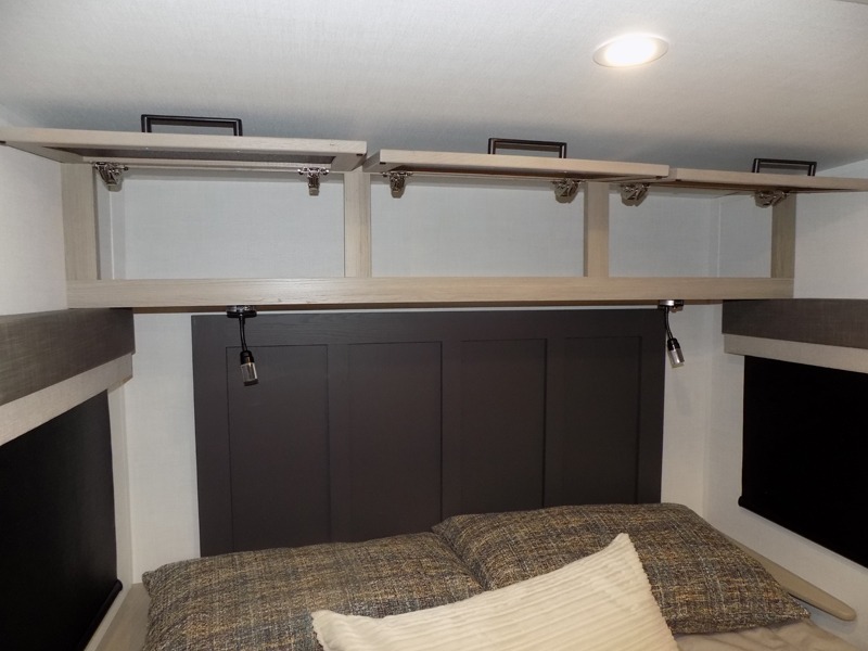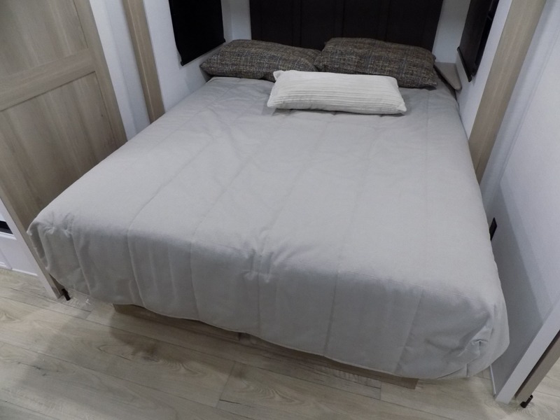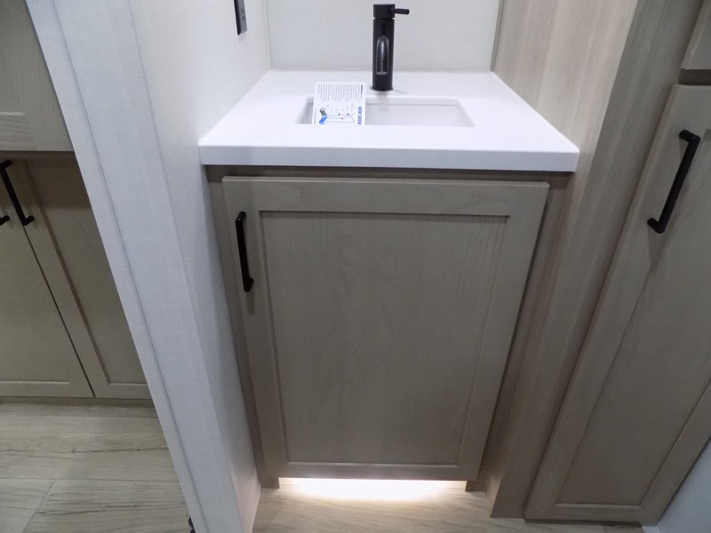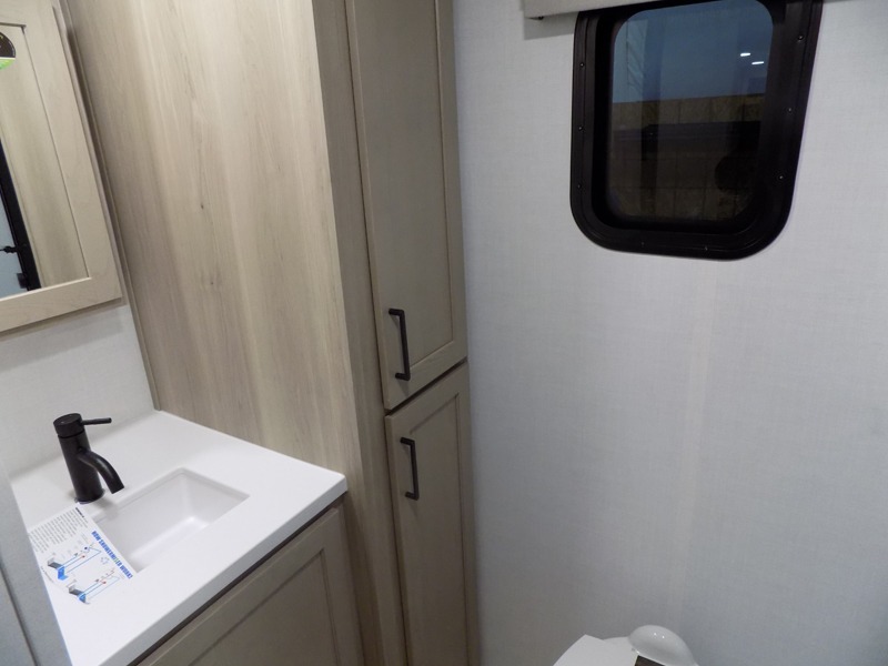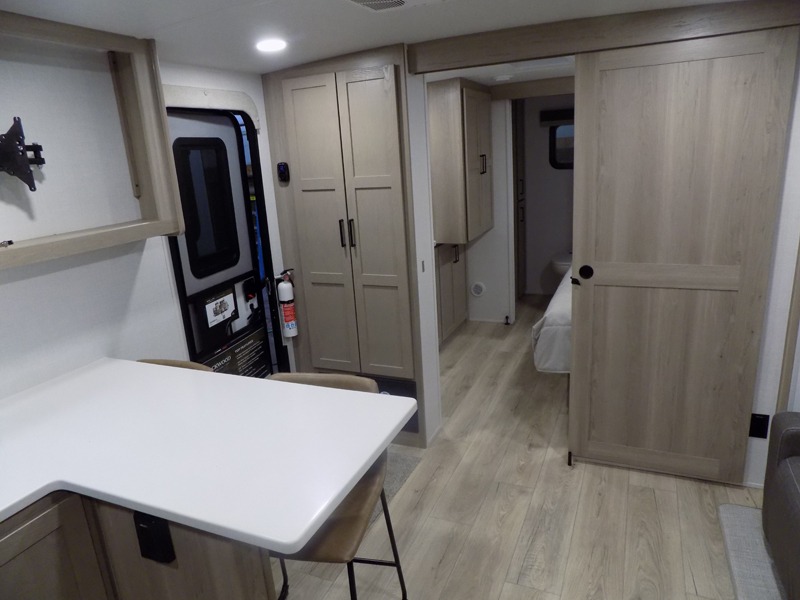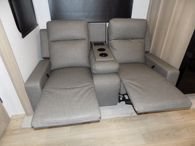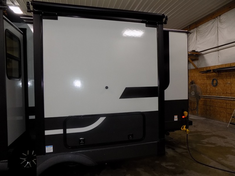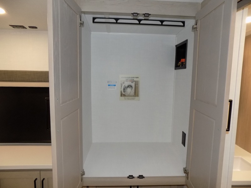 This travel trailer is the best option for you and your partner! The lavish full rear bathroom features a spacious layout and a convenient linen closet, perfect for relaxation and refreshment. The elegant bedroom boasts a plush queen bed, ample wardrobe space, and stylish dresser, creating a serene retreat. The spacious living room and kitchen combined area is the heart of the trailer, featuring plush theater seating for cozy movie nights, a generous closet for storing essentials, and a 12V Smart TV for entertainment on the go. Plus, the expansive countertop with chairs provides a perfect spot for gourmet meals or socializing, while the premium three-burner cooktop, well-stocked kitchen pantry, and high-performance microwave make meal prep and cooking a true delight.