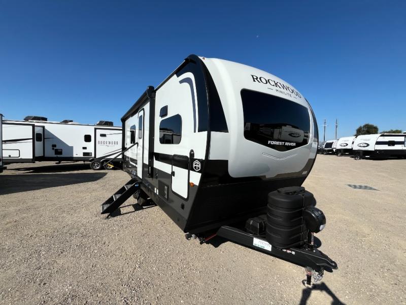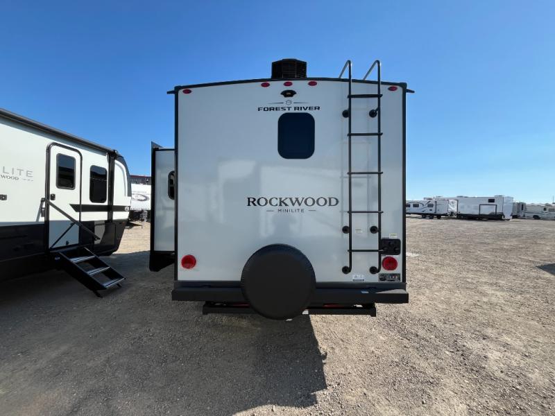 Each Rockwood Mini Lite travel trailer by Forest River is constructed with a fully laminated one-piece walkable roof, sleek frameless windows, and a six-sided full aluminum frame for strength and durability. The 12V thermostatically controlled heated tanks, plus radiant foil in the underbelly will allow you to camp well into the colder months, and the 200W roof solar panel will be perfect for a little off-gridding. Each model includes solid surface kitchen countertops, hidden hinge cabinet doors, roller shades, plus many more interior features. Having an AIR 360+ omnidirectional antenna with WiFi prep on board gives you the option to get some work done if it's needed, and the power tongue jack provides hassle-free set up, so you can enjoy more time relaxing!