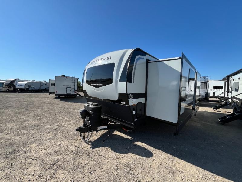 Each Rockwood Mini Lite travel trailer by Forest River is constructed with a fully laminated one-piece walkable roof, sleek frameless windows, and a six-sided full aluminum frame for strength and durability. The 12V thermostatically controlled heated tanks, plus radiant foil in the underbelly will allow you to camp well into the colder months, and the 200W roof solar panel will be perfect for a little off-gridding. Each model includes solid surface kitchen countertops, hidden hinge cabinet doors, roller shades, plus many more interior features. Having an AIR 360+ omnidirectional antenna with WiFi prep on board gives you the option to get some work done if it's needed, and the power tongue jack provides hassle-free set up, so you can enjoy more time relaxing!
