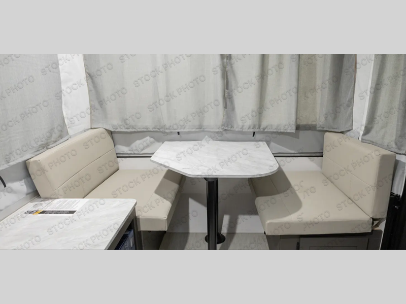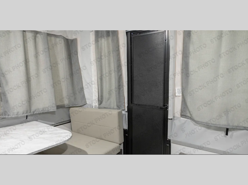 With any Rockwood OTG (Off The Ground) folding pop-up camper by Forest River, you will enjoy a more simple approach to outdoor fun. If you're a regular tent camper, but are looking for a little more comfort, then take a look at these easy-to-tow models! There are electric brakes, balancing bead filled tires, and leaf spring axles that provide that easy towing, and the alloy fiberglass exterior is durable. A one-piece screen door also comes standard so you can let fresh air in, while keeping bugs out, and the LED interior lights will be an added benefit you didn't have while tent camping. Each model also includes residential style cabinet doors, wood look flooring, and an Andover Sable wood interior for a more outdoorsy feel!