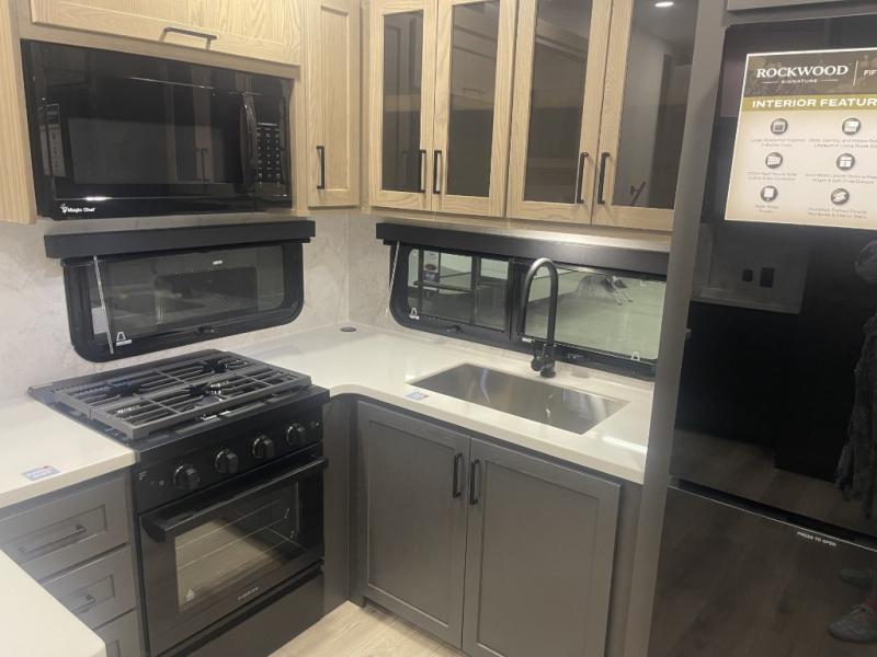 With any Rockwood Signature fifth wheel or travel trailer by Forest River RV, you will enjoy superior construction that includes a fully laminated walkable roof, 6-sided full-aluminum frame, and a painted fiberglass front cap with Clear Coat for added durability. Outside, you'll find a 200W solar panel for off-grid capabilities, slam baggage doors, and Key-Alike lock system for added convenience. Head inside to find soft close roller bearing drawers, roller shades, and residential style gas range. These travel trailer and fifth wheels also feature Goodyear Endurance tires with a tire pressure monitoring system plus Dexter Torflex torsion axles for smooth towing!