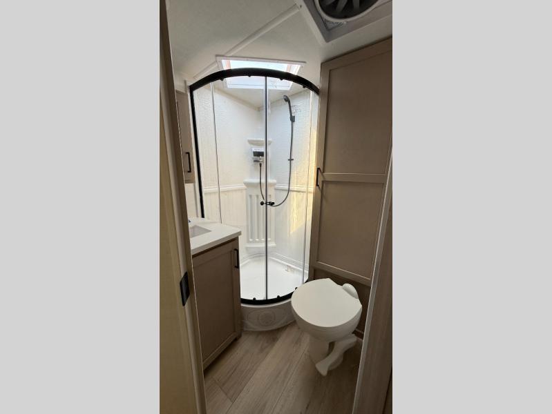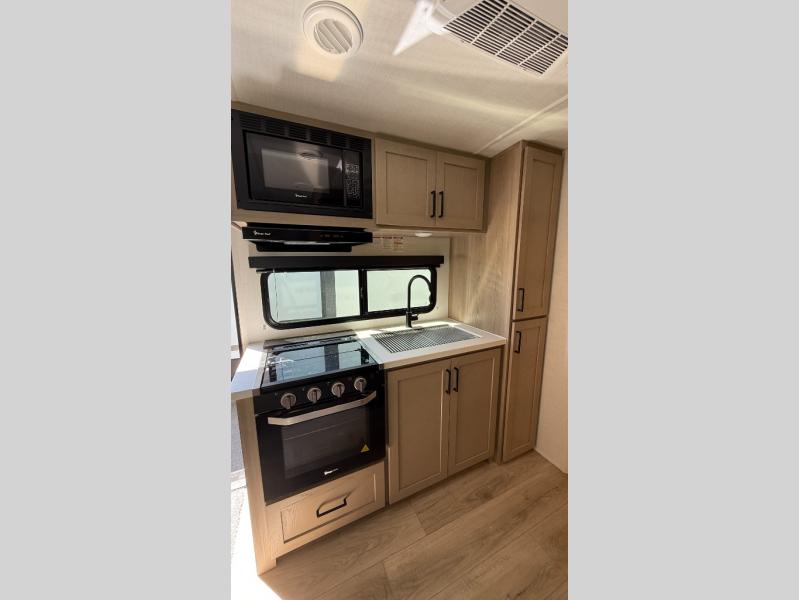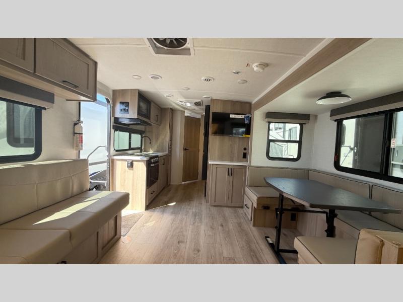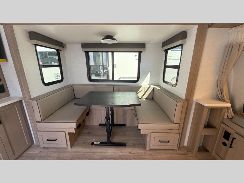 With any Rockwood Roo expandable travel trailer by Forest River you will enjoy smooth towing thanks to the Rubber-Ryde suspension and Nev-R-Adjust brakes. The key-Alike locks provide easy access in and out of your trailer, and each model includes prep for a Air 360+Omnidirectional antenna with WiFi for all your connection needs. Each model is constructed with a vacuum laminated one-piece roof and walls, an enclosed underbelly, and tinted framed windows for a more sleek look. You will enjoy many interior comforts, including hardwood cabinet doors and drawer fronts, night roller shades, a bunk/fan light combo with each bed, and much more!