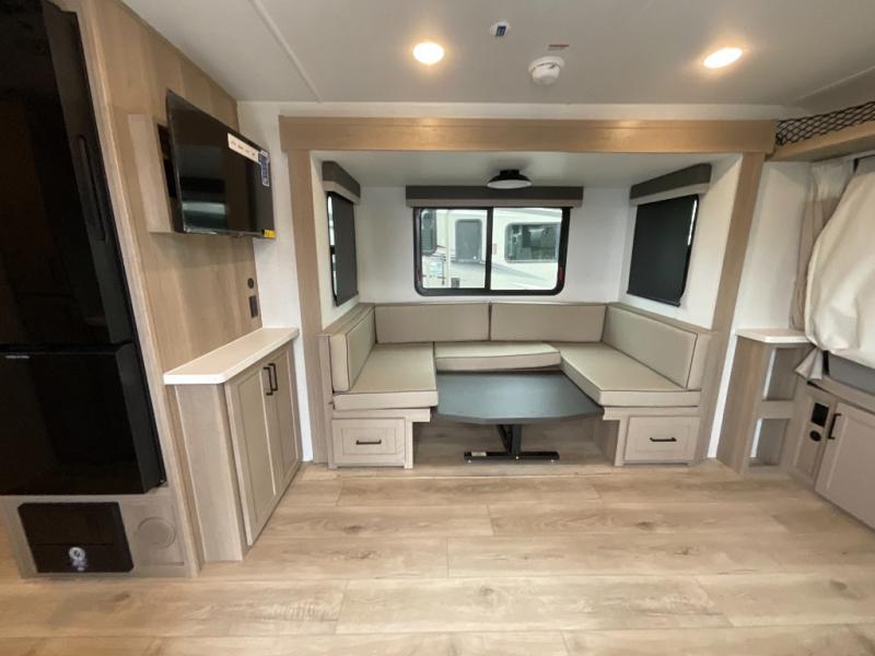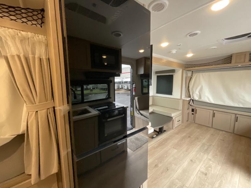 It’s the perfect balance of compact towing and maximum living space. You’ll have all the comforts of home, yet still feel close to nature when you unzip those queen tent end beds. Whether you’re cooking breakfast inside, relaxing at the dinette, or heading out for a day of fishing, hiking, or biking, this travel trailer keeps every trip fun, easy, and memorable.