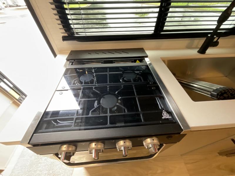 Kitchen Pantry & 12V Refrigerator – Keep snacks and meals organized with plenty of cold storage.