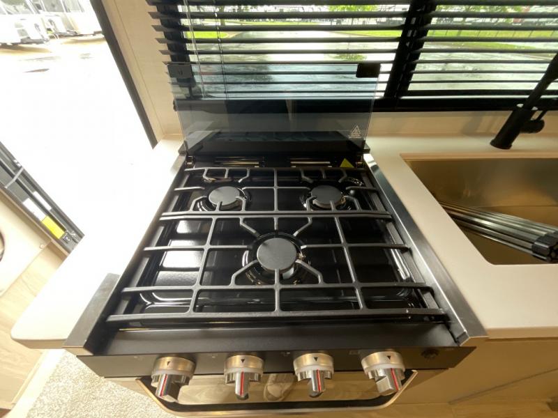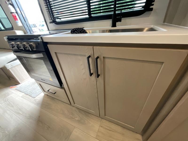 Near Nature Package interior upgrades with roller shades, hidden hinge cabinetry, and residential-style countertops for a clean, modern feel.