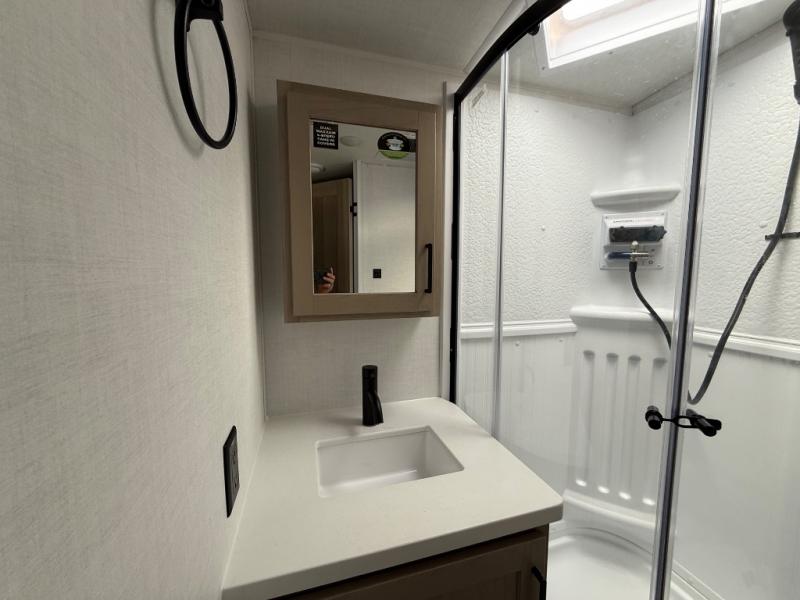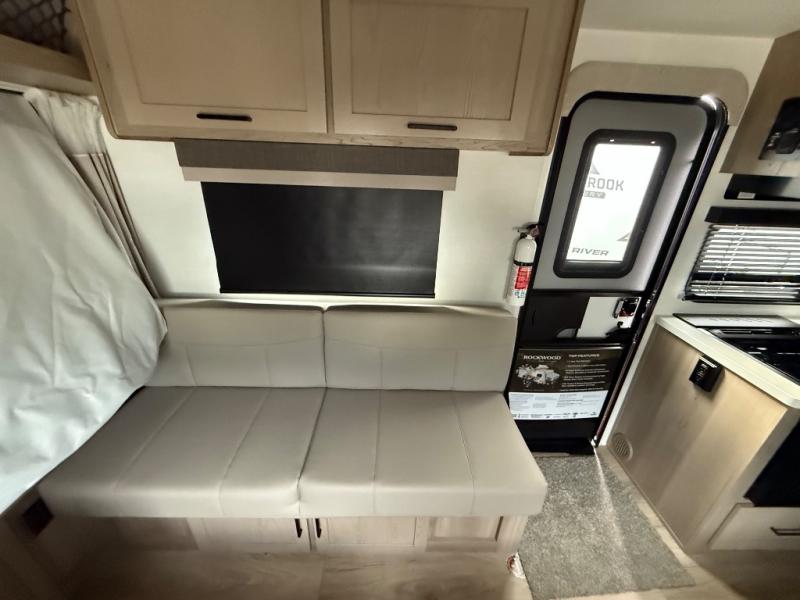 With any Rockwood Roo expandable travel trailer by Forest River you will enjoy smooth towing thanks to the torsion axle, Rubber-Ryde suspension, the easy lube axles and Nev-R-Adjust brakes. The key-Alike locks provide easy access in and out of your trailer, and each model includes prep for a Air 360+Omnidirectional antenna with WiFi for all your connection needs. Each model is constructed with a vacuum laminated one-piece roof and walls, an enclosed underbelly, and tinted framed windows for a more sleek look. You will enjoy many interior comforts, including hardwood cabinet doors and drawer fronts, night roller shades, a bunk/fan light combo with each bed, and much more!