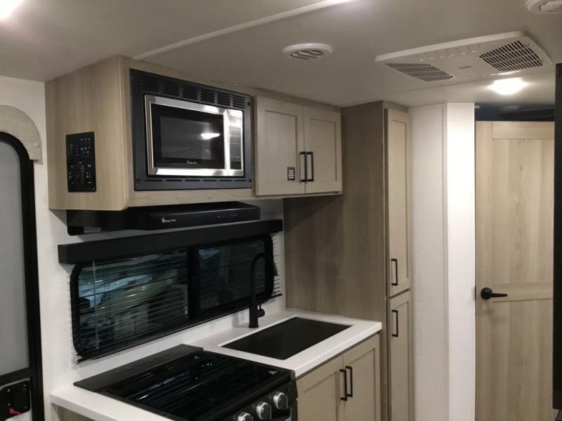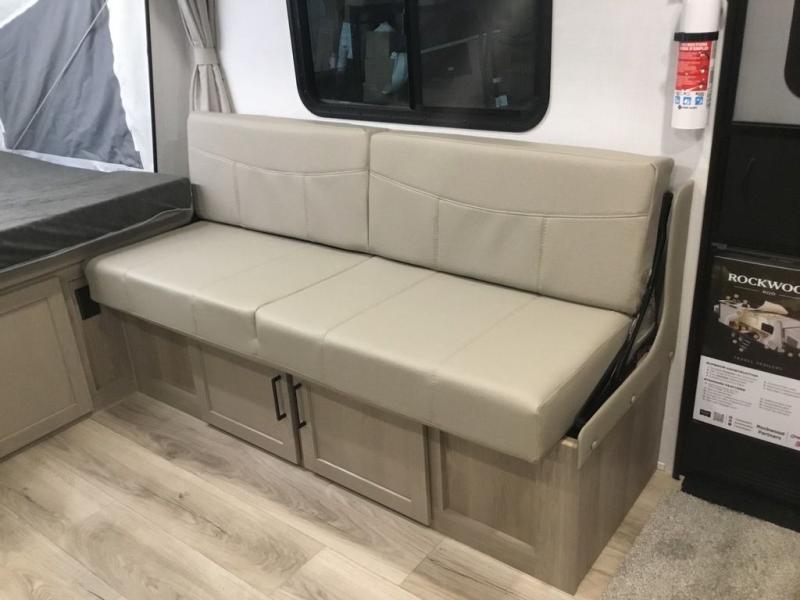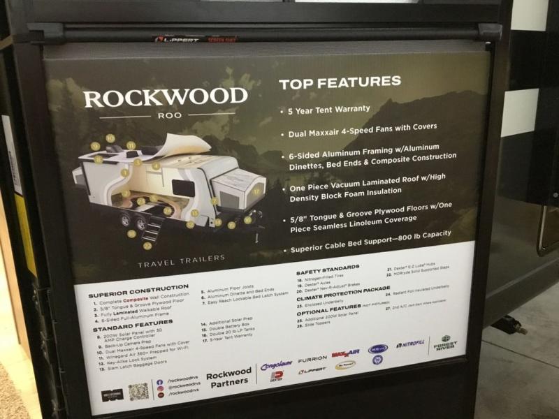 With any Rockwood Roo expandable travel trailer by Forest River you will enjoy smooth towing thanks to the Dexter sprung axles and nitrogen-filled tires. The key-Alike locks provide easy access in and out of your trailer, and each model includes Winegard Air 360+ prepped for WiFi for all your connection needs. Each model is constructed with a fully laminated walkable roof, a 6-sided full-aluminum frame, and complete composite wall construction for added durability. You will enjoy many interior comforts, including residential look kitchen countertops, roller shades, hidden hinge cabinet doors, and more features found within the Near Nature Package!