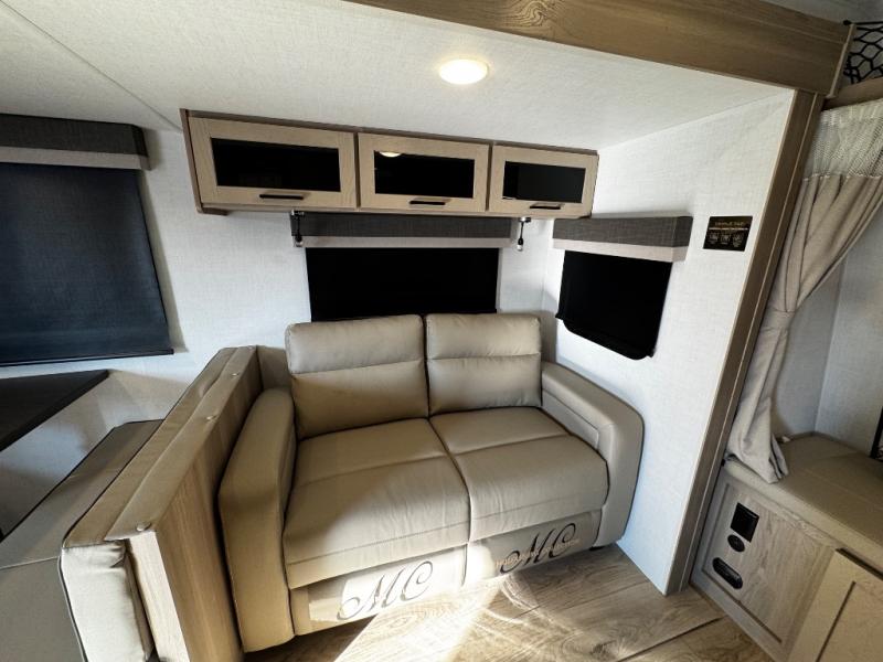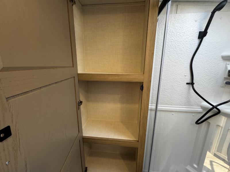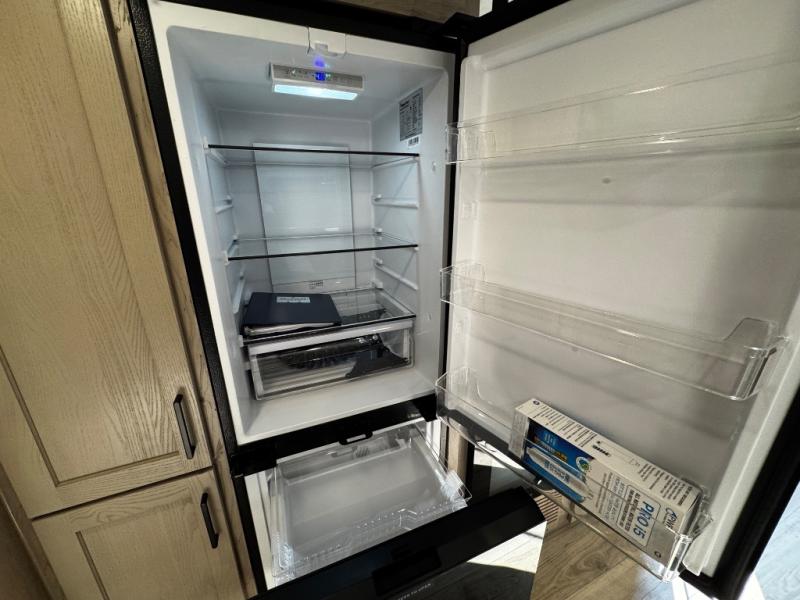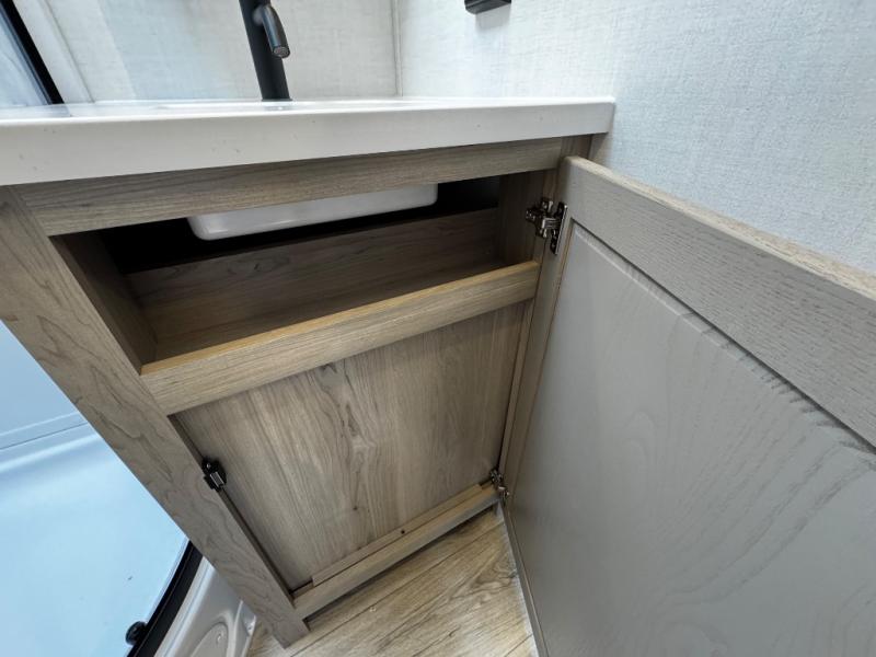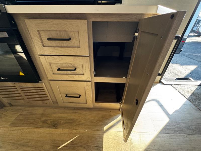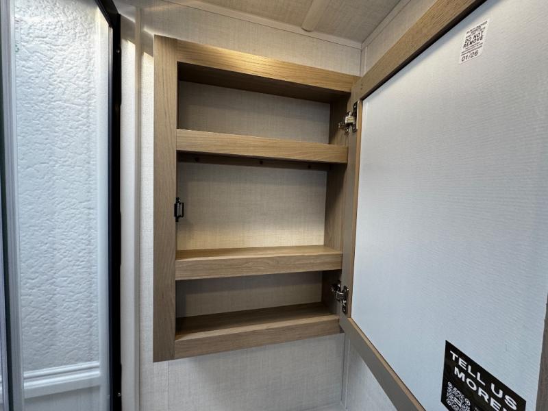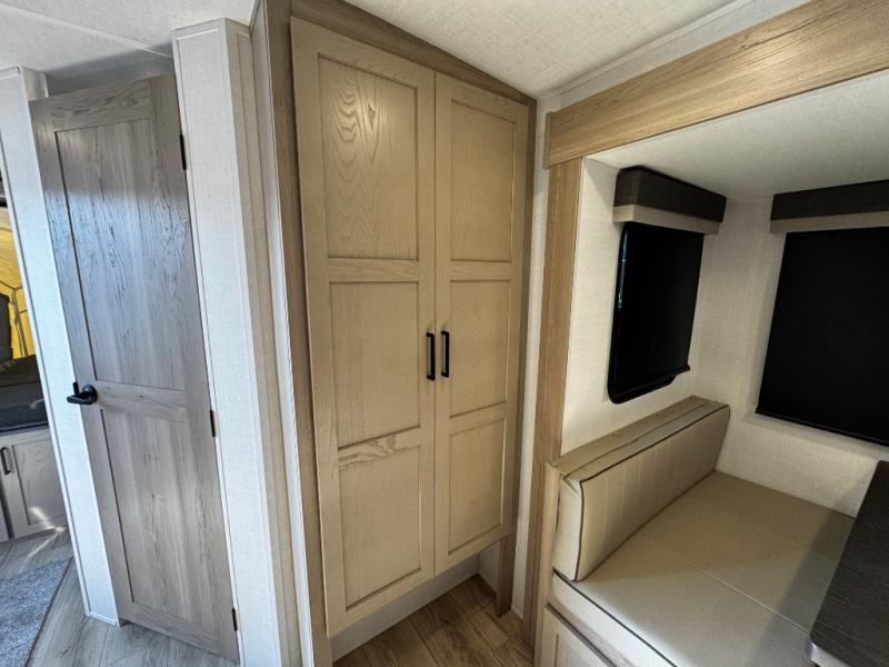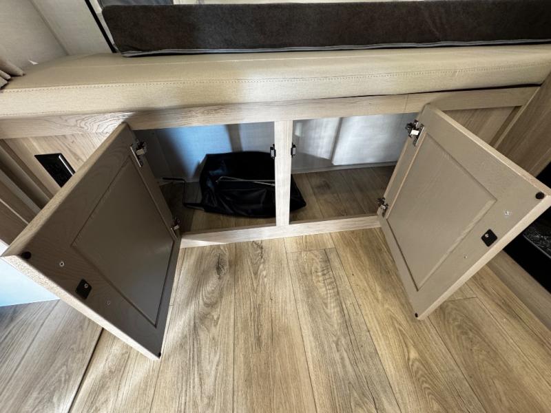 This expandable includes a large slide out that will make you feel right at home, so come take a look! The 12V smart TV and fireplace is right across from the hide-a-bed sofa for easy viewing, and there is a booth dinette to dine together. The chef of the family can cook indoors on the three burner cooktop, or outdoors at the outside kitchen with a pull-out griddle. Tuck your belongings in the overhead shelves, and snacks can go in the pantry. Don't forget about the exterior storage for your larger camp gear!