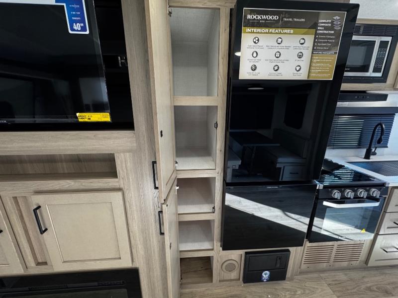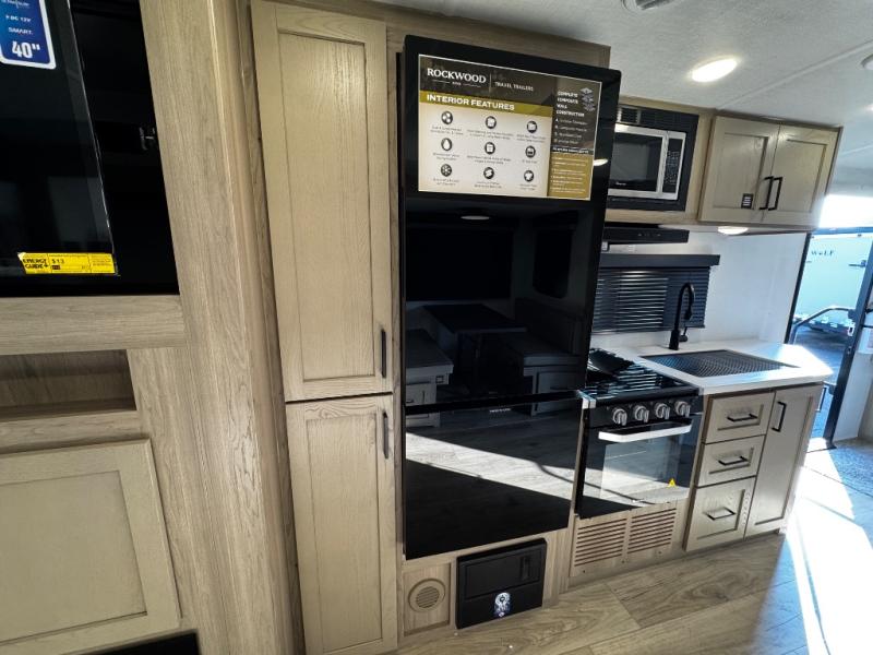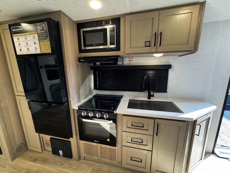 With any Rockwood Roo expandable travel trailer by Forest River you will enjoy smooth towing thanks to the Dexter sprung axles and nitrogen-filled tires. The key-Alike locks provide easy access in and out of your trailer, and each model includes Winegard Air 360+ prepped for WiFi for all your connection needs. Each model is constructed with a fully laminated walkable roof, a 6-sided full-aluminum frame, and complete composite wall construction for added durability. You will enjoy many interior comforts, including residential look kitchen countertops, roller shades, hidden hinge cabinet doors, and more features found within the Near Nature Package!