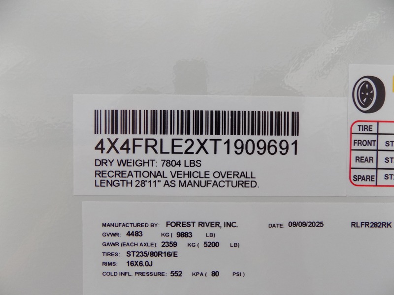 2026 282RK Specifications