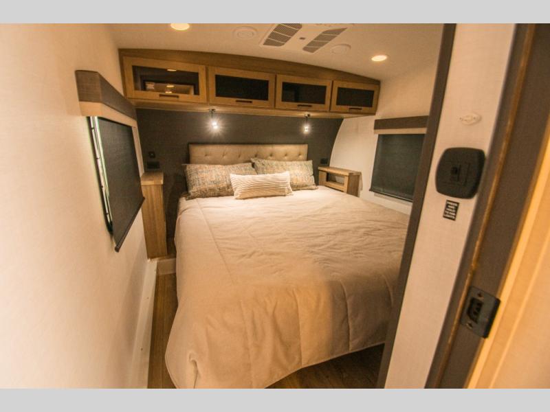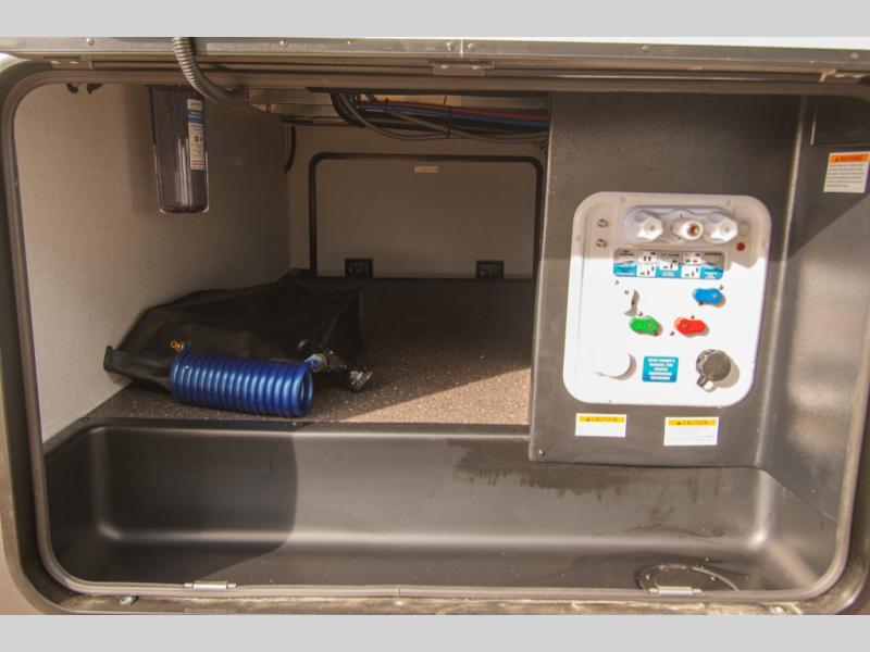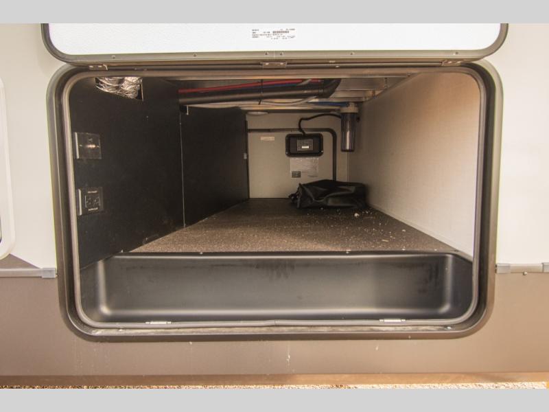 Outside, a large pass-through storage compartment makes it easy to bring along camping chairs and larger gear. Additional exterior storage, a 20' awning, and Solid Step entry steps round out the exterior features, adding convenience and usability at the campsite.