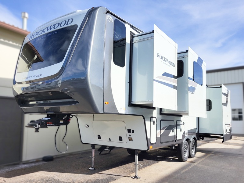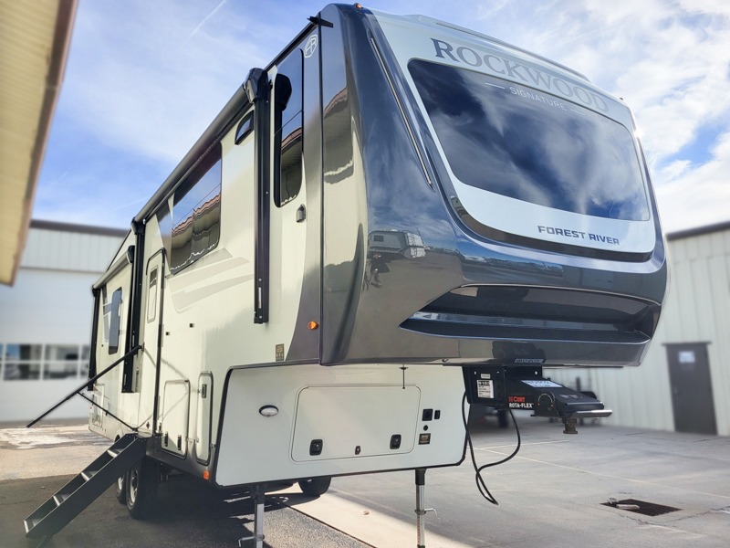 With any Rockwood Signature fifth wheel or travel trailer by Forest River RV, you will enjoy superior construction that includes a fully laminated walkable roof, 6-sided full-aluminum frame, and a painted fiberglass front cap with Clear Coat for added durability. Outside, you'll find a 200W solar panel for off-grid capabilities, slam baggage doors, and Key-Alike lock system for added convenience. Head inside to find soft close roller bearing drawers, roller shades, and residential style gas range. These travel trailer and fifth wheels also feature Goodyear Endurance tires with a tire pressure monitoring system plus Dexter Torflex torsion axles for smooth towing!