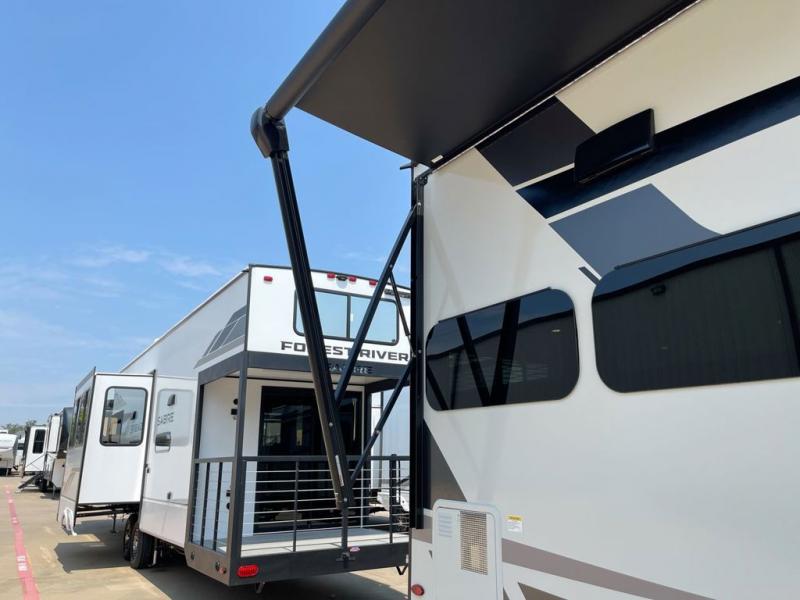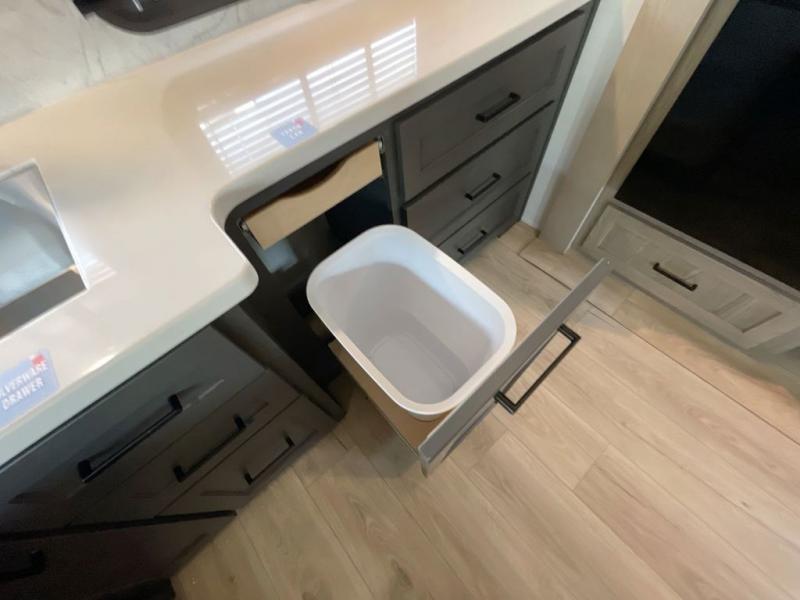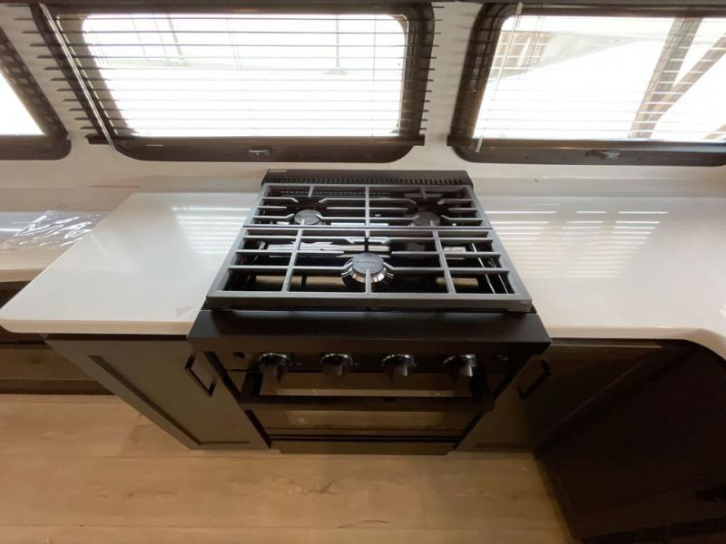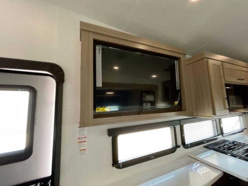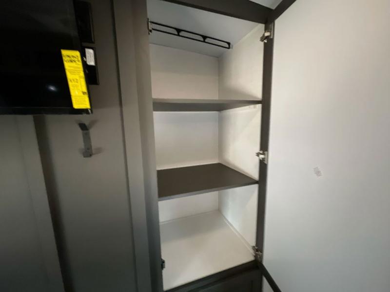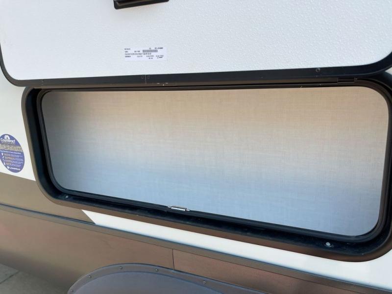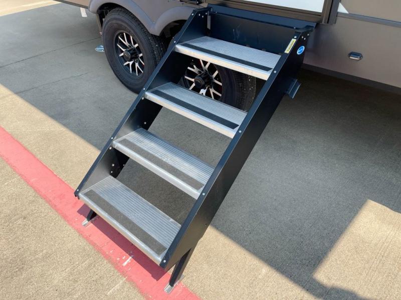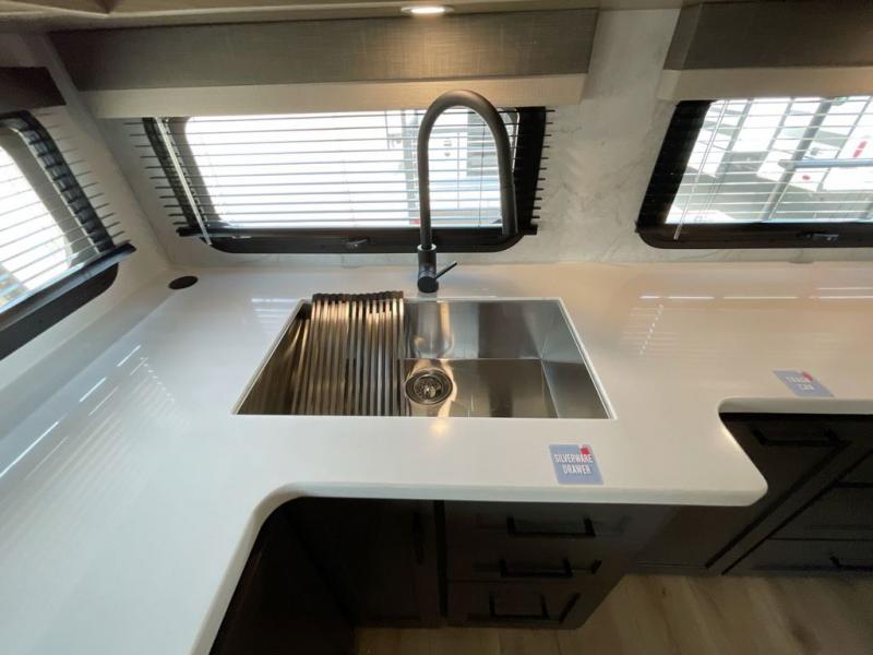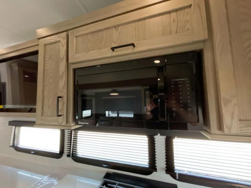 Why not have enough space for all your RVing friends to visit when you camp? This RV offers the perfect living and kitchen area with a large slide giving everyone more floor space, plus there is a king U-shaped dinette and a hide-a-bed sofa to sit on, a fireplace to enjoy and a Smart TV to watch a game or movie together. The cook will love the rear kitchen with extra counter space along a side wall to leave all the snacks and treats for everyone. You might even take everyone outside to enjoy the 21' power awning that offers an outdoor living area with some protection and LED lighting; just grab your camping chairs from the pass-through storage. At night, you can retire to the front bedroom with a queen bed, a spacious wardrobe, plus a TV option if you enjoy movies in bed!