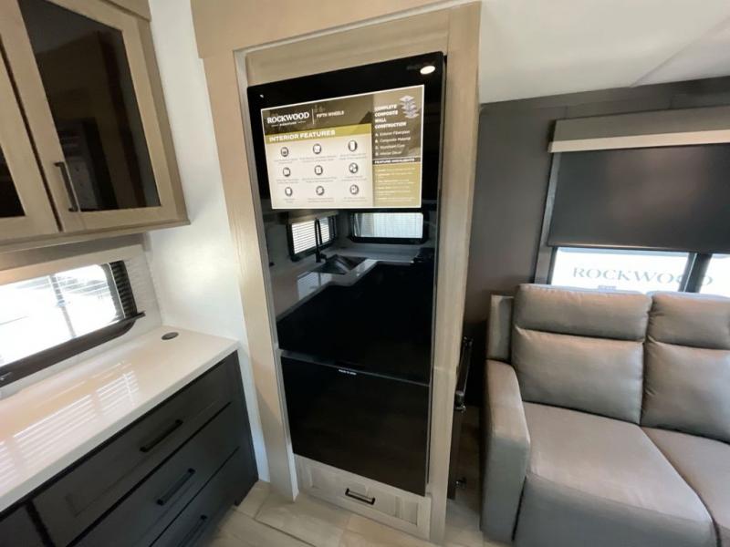 With any Rockwood Signature fifth wheel or travel trailer by Forest River RV, you will enjoy superior construction that includes a fully laminated walkable roof, 6-sided full-aluminum frame, and a painted fiberglass front cap with Clear Coat for added durability. Outside, you'll find a 200W solar panel for off-grid capabilities, slam baggage doors, and Key-Alike lock system for added convenience. Head inside to find soft close roller bearing drawers, roller shades, and residential style gas range. These travel trailer and fifth wheels also feature Goodyear Endurance tires with a tire pressure monitoring system plus Dexter Torflex torsion axles for smooth towing!