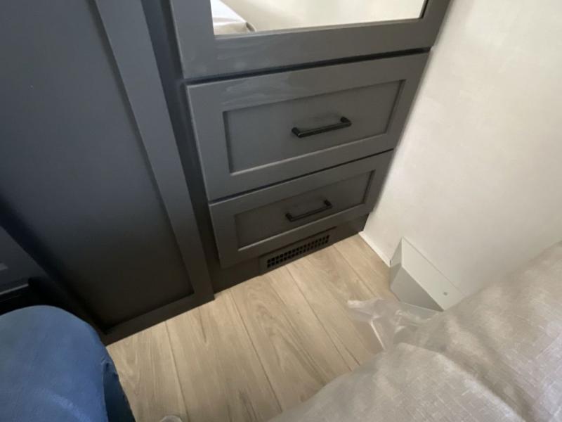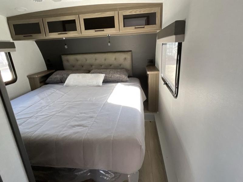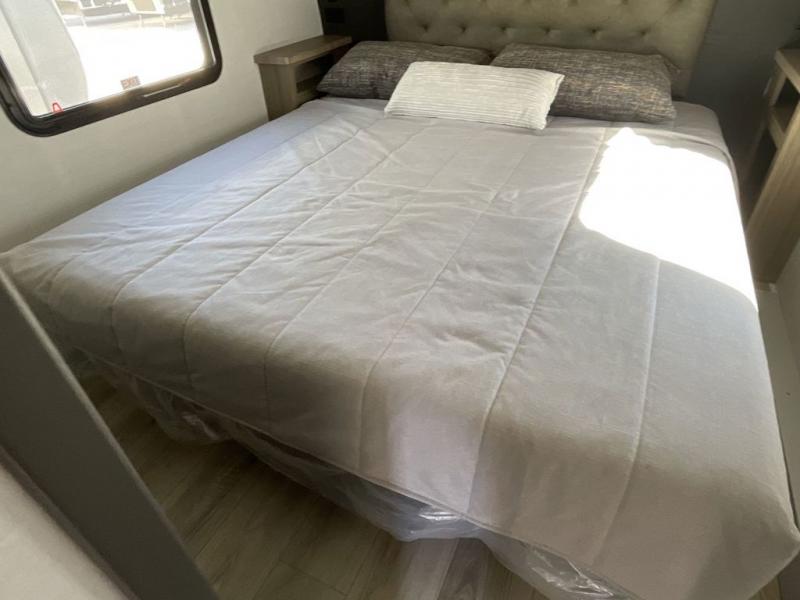 Why not have enough space for all your RVing friends to visit when you camp? This RV offers the perfect living and kitchen area with a large slide giving everyone more floor space, plus there is a king U-shaped dinette and a hide-a-bed sofa to sit on, a fireplace to enjoy and a Smart TV to watch a game or movie together. The cook will love the rear kitchen with extra counter space along a side wall to leave all the snacks and treats for everyone. You might even take everyone outside to enjoy the 21' power awning that offers an outdoor living area with some protection and LED lighting; just grab your camping chairs from the pass-through storage. At night, you can retire to the front bedroom with a queen bed, a spacious wardrobe, plus a TV option if you enjoy movies in bed!