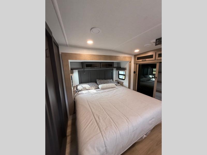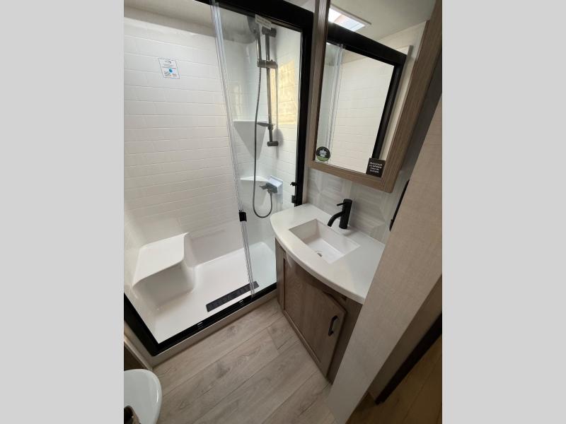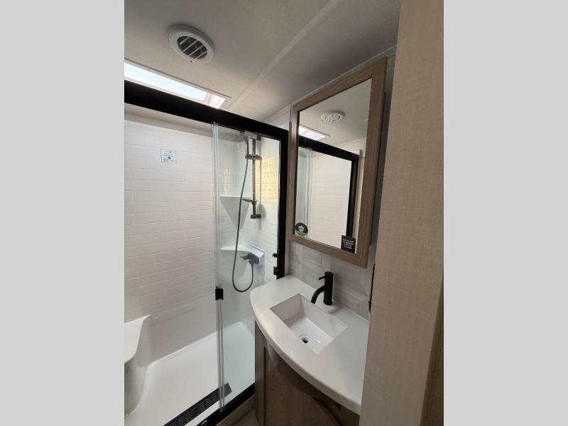 With any Rockwood Signature fifth wheel or travel trailer by Forest River RV, you will enjoy superior construction that includes laminated white fiberglass sidewalls, a radius roof with vaulted interior ceilings, plus radiant foil insulation and an enclosed underbelly for use in all types of weather. Some convenient exterior features include Keyed Alike locks, a rear ladder, a 200W solar panel, and a tire pressure monitor system with a monitor for added safety. The interior offers a One Touch OneControl panel with WeRV app control, for lights, awning, slides, water heater and more, and the Air 360+ omnidirectional antenna with WiFi prep lets you work while away from home if needed. You will also appreciate the interior vaulted ceilings, residential soft close doors and drawers, solid surface kitchen countertops, and designer kitchen backsplash!