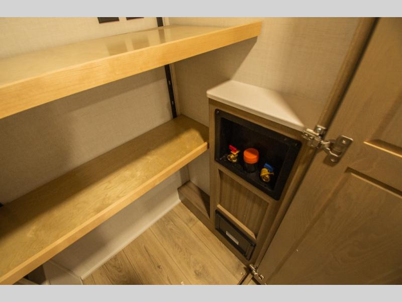 Outside, pass-through storage gives you room for chairs, tools, and larger camping gear, helping keep the interior clutter-free while still bringing everything you need along for the trip.