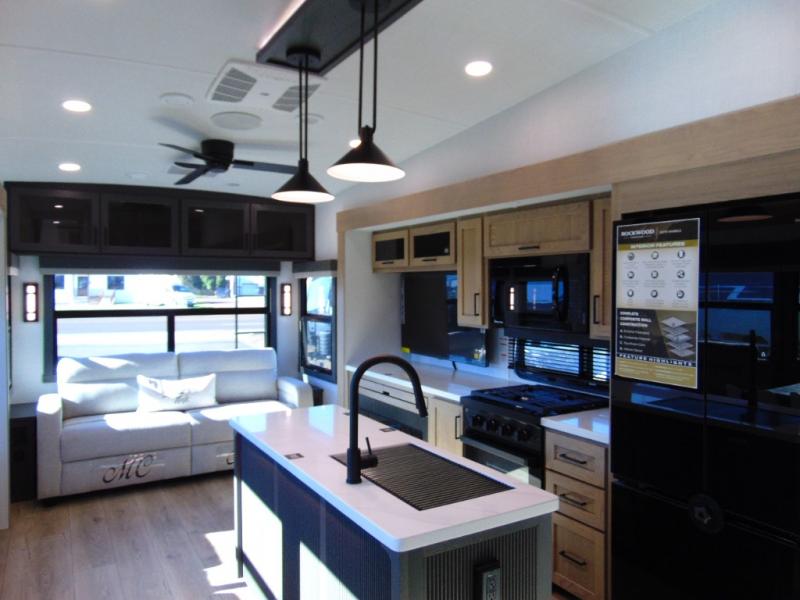 With any Rockwood Signature fifth wheel or travel trailer by Forest River RV, you will enjoy superior construction that includes a fully laminated walkable roof, 6-sided full-aluminum frame, and a painted fiberglass front cap with Clear Coat for added durability. Outside, you'll find a 200W solar panel for off-grid capabilities, slam baggage doors, and Key-Alike lock system for added convenience. Head inside to find soft close roller bearing drawers, roller shades, and residential style gas range. These travel trailer and fifth wheels also feature Goodyear Endurance tires with a tire pressure monitoring system plus Dexter Torflex torsion axles for smooth towing!