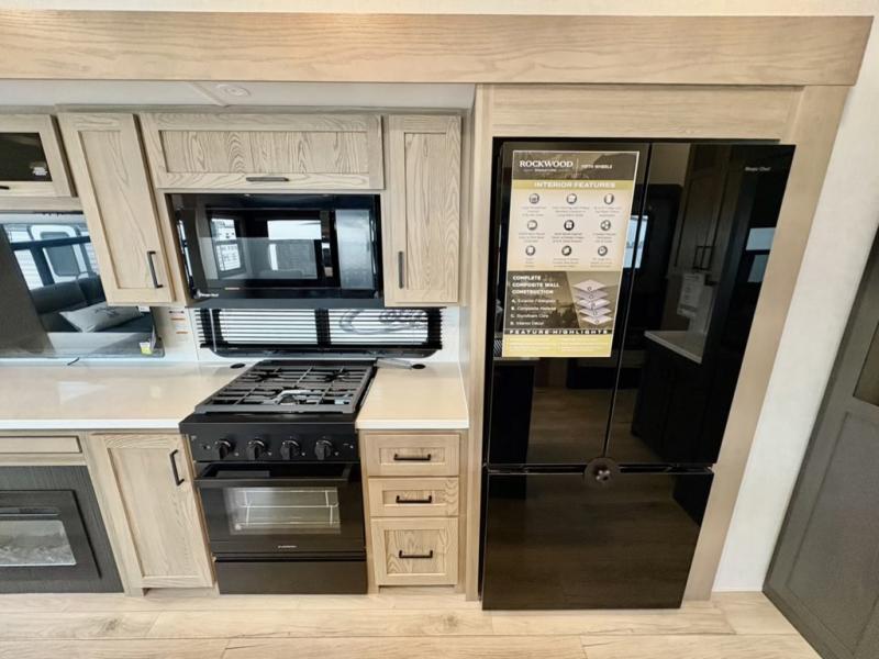With any Rockwood Signature fifth wheel or travel trailer by Forest River RV, you will enjoy superior construction that includes a fully laminated walkable roof, 6-sided full-aluminum frame, and a painted fiberglass front cap with Clear Coat for added durability. Outside, you'll find a 200W solar panel for off-grid capabilities, slam baggage doors, and Key-Alike lock system for added convenience. Head inside to find soft close roller bearing drawers, roller shades, and residential style gas range. These travel trailer and fifth wheels also feature Goodyear Endurance tires with a tire pressure monitoring system plus Dexter Torflex torsion axles for smooth towing!