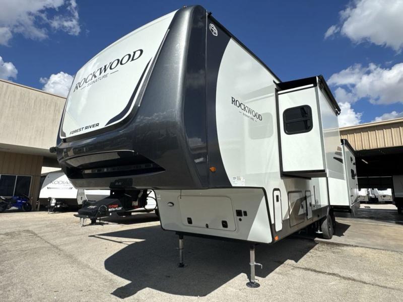 With any Rockwood Signature fifth wheel or travel trailer by Forest River RV, you will enjoy superior construction that includes a fully laminated walkable roof, 6-sided full-aluminum frame, and a painted fiberglass front cap with Clear Coat for added durability. Outside, you'll find a 200W solar panel for off-grid capabilities, slam baggage doors, and Key-Alike lock system for added convenience. Head inside to find soft close roller bearing drawers, roller shades, and residential style gas range. These travel trailer and fifth wheels also feature Goodyear Endurance tires with a tire pressure monitoring system plus Dexter Torflex torsion axles for smooth towing!