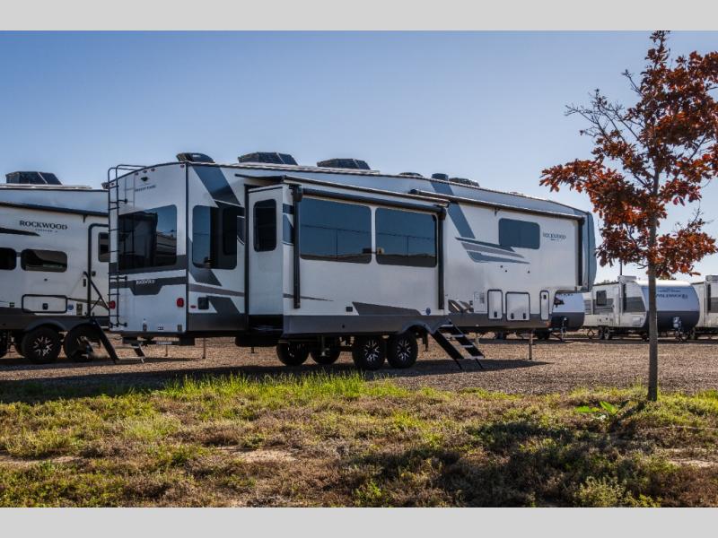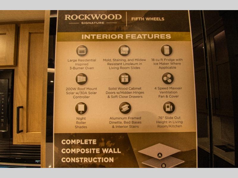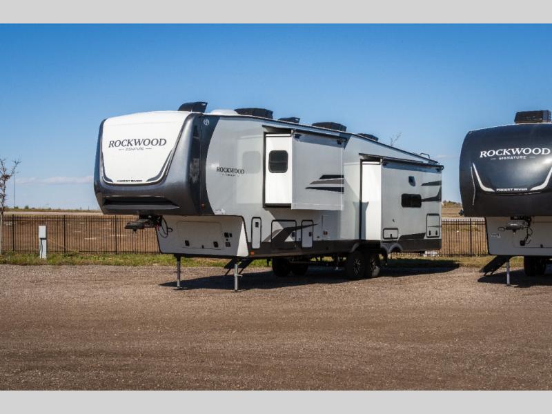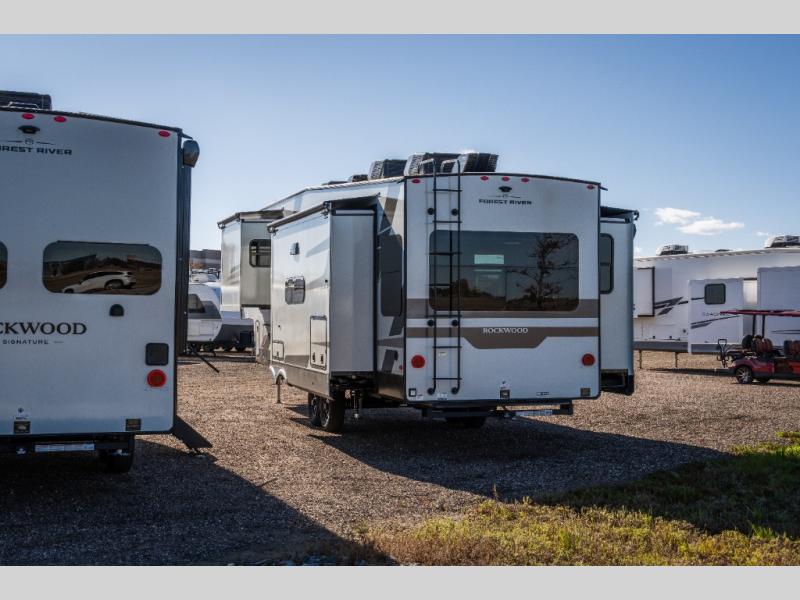 With any Rockwood Signature fifth wheel or travel trailer by Forest River RV, you will enjoy superior construction that includes a fully laminated walkable roof, 6-sided full-aluminum frame, and a painted fiberglass front cap with Clear Coat for added durability. Outside, you'll find a 200W solar panel for off-grid capabilities, slam baggage doors, and Key-Alike lock system for added convenience. Head inside to find soft close roller bearing drawers, roller shades, and residential style gas range. These travel trailer and fifth wheels also feature Goodyear Endurance tires with a tire pressure monitoring system plus Dexter Torflex torsion axles for smooth towing!