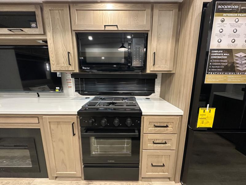 With any Rockwood Signature fifth wheel or travel trailer by Forest River RV, you will enjoy superior construction that includes a fully laminated walkable roof, 6-sided full-aluminum frame, and a painted fiberglass front cap with Clear Coat for added durability. Outside, you'll find a 200W solar panel for off-grid capabilities, slam baggage doors, and Key-Alike lock system for added convenience. Head inside to find soft close roller bearing drawers, roller shades, and residential style gas range. These travel trailer and fifth wheels also feature Goodyear Endurance tires with a tire pressure monitoring system plus Dexter Torflex torsion axles for smooth towing!