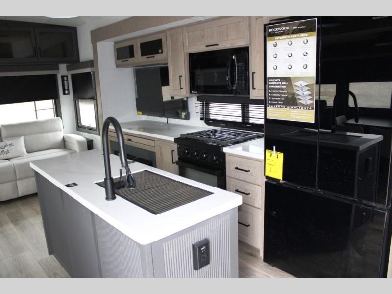 With any Rockwood Signature fifth wheel or travel trailer by Forest River RV, you will enjoy superior construction that includes a fully laminated walkable roof, 6-sided full-aluminum frame, and a painted fiberglass front cap with Clear Coat for added durability. Outside, you'll find a 200W solar panel for off-grid capabilities, slam baggage doors, and Key-Alike lock system for added convenience. Head inside to find soft close roller bearing drawers, roller shades, and residential style gas range. These travel trailer and fifth wheels also feature Goodyear Endurance tires with a tire pressure monitoring system plus Dexter Torflex torsion axles for smooth towing!