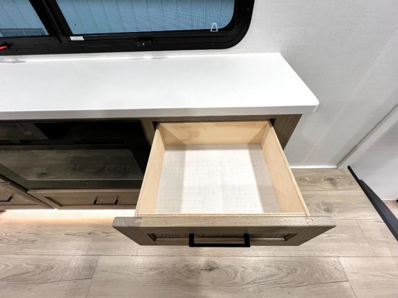 With any Rockwood Signature fifth wheel or travel trailer by Forest River RV, you will enjoy superior construction that includes a fully laminated walkable roof, 6-sided full-aluminum frame, and a painted fiberglass front cap with Clear Coat for added durability. Outside, you'll find a 200W solar panel for off-grid capabilities, slam baggage doors, and Key-Alike lock system for added convenience. Head inside to find soft close roller bearing drawers, roller shades, and residential style gas range. These travel trailer and fifth wheels also feature Goodyear Endurance tires with a tire pressure monitoring system plus Dexter Torflex torsion axles for smooth towing!