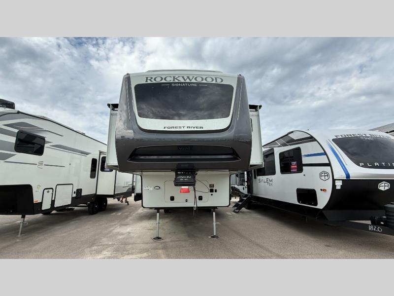 With any Rockwood Signature fifth wheel or travel trailer by Forest River RV, you will enjoy superior construction that includes a fully laminated walkable roof, 6-sided full-aluminum frame, and a painted fiberglass front cap with Clear Coat for added durability. Outside, you'll find a 200W solar panel for off-grid capabilities, slam baggage doors, and Key-Alike lock system for added convenience. Head inside to find soft close roller bearing drawers, roller shades, and residential style gas range. These travel trailer and fifth wheels also feature Goodyear Endurance tires with a tire pressure monitoring system plus Dexter Torflex torsion axles for smooth towing!