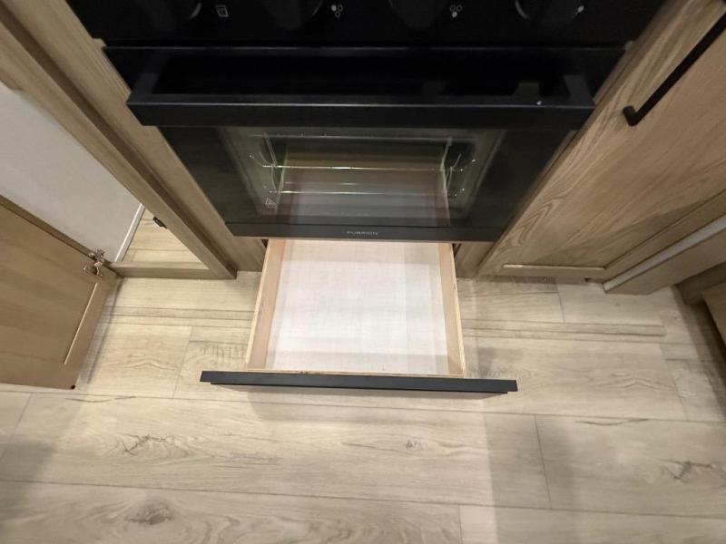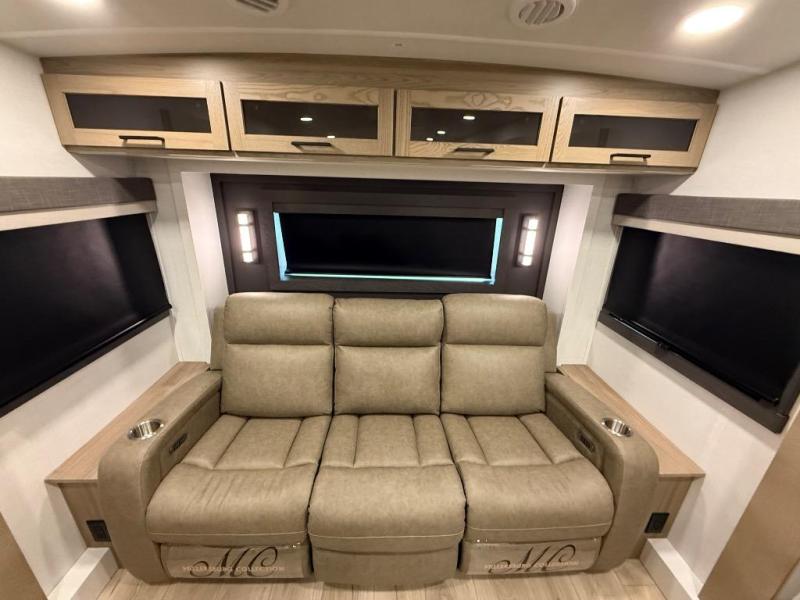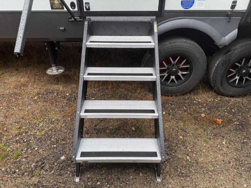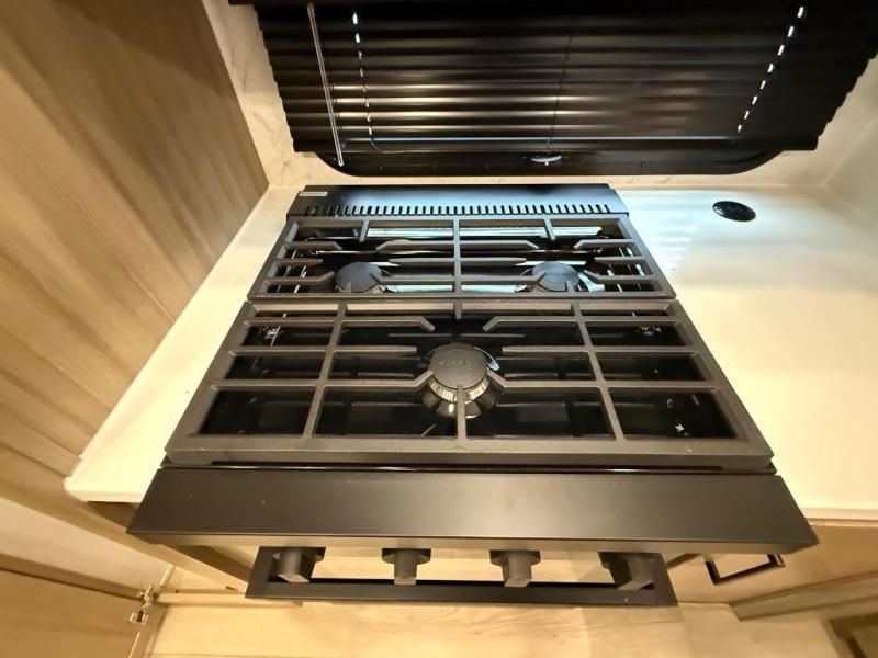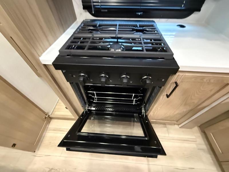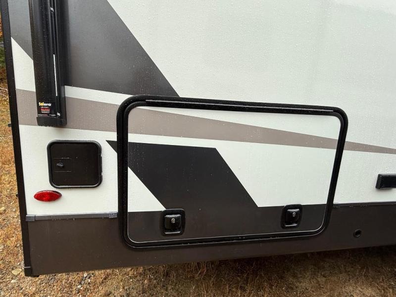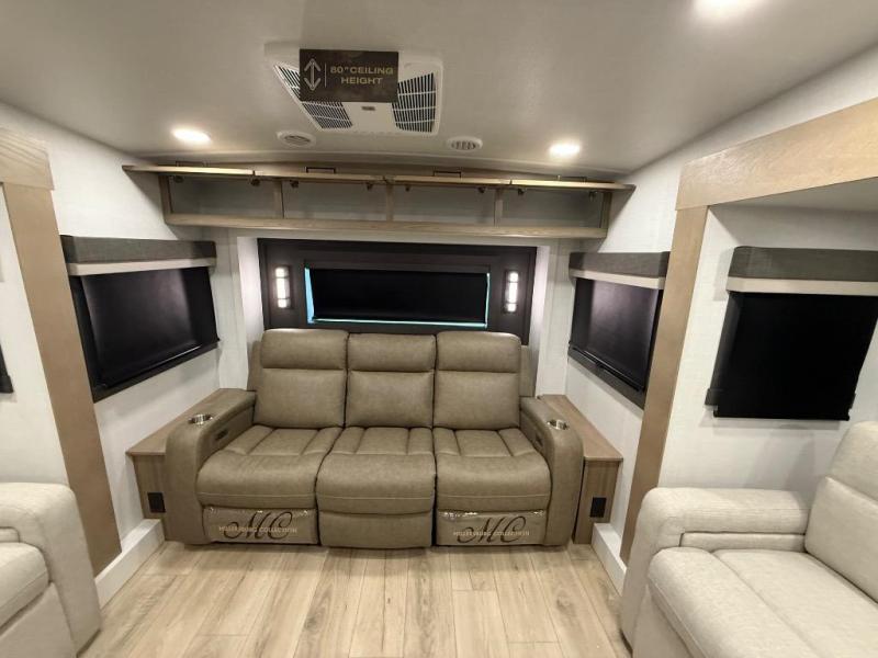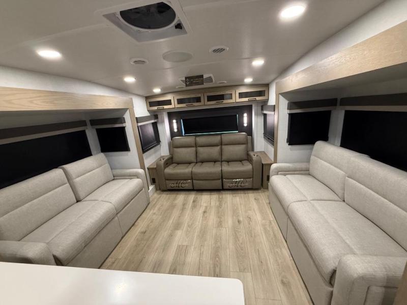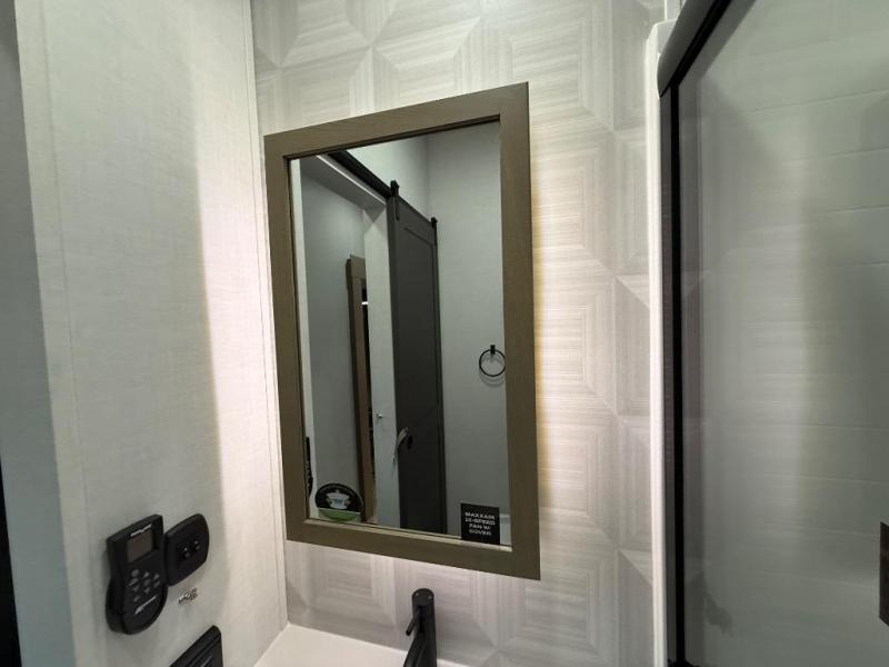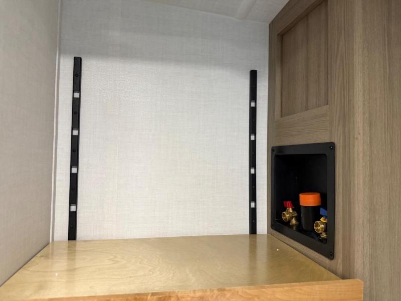 This fifth wheel is designed for comfort, connection, and relaxation on the road. The 72" x 80" king bed in the bedroom offers a spacious and restful retreat after a long day. Mealtime is a time to gather, and the rotating table with chairs creates the perfect setting to sit down, share stories, and reflect on the day’s adventures. For more laid-back evenings, the front living area features a Televator TV, turning the space into a cozy home theater for movie nights with the whole crew. When it’s time to wind down, two 68" hide-a-beds provide additional sleeping space, ensuring everyone has a comfortable place to rest.