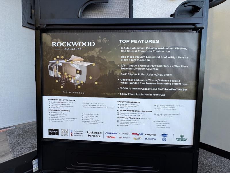 With any Rockwood Signature fifth wheel or travel trailer by Forest River RV, you will enjoy superior construction that includes a fully laminated walkable roof, 6-sided full-aluminum frame, and a painted fiberglass front cap with Clear Coat for added durability. Outside, you'll find a 200W solar panel for off-grid capabilities, slam baggage doors, and Key-Alike lock system for added convenience. Head inside to find soft close roller bearing drawers, roller shades, and residential style gas range. These travel trailer and fifth wheels also feature Goodyear Endurance tires with a tire pressure monitoring system plus Dexter Torflex torsion axles for smooth towing!
