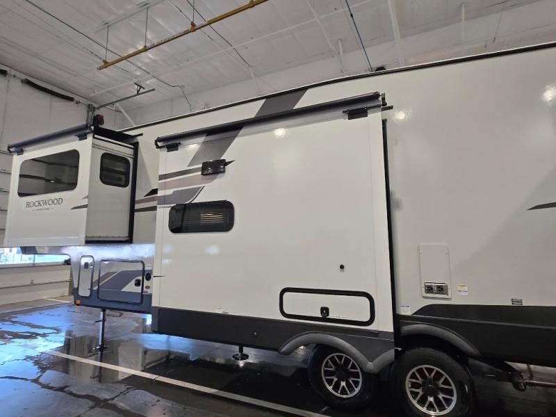 With any Rockwood Signature fifth wheel or travel trailer by Forest River RV, you will enjoy superior construction that includes a fully laminated walkable roof, 6-sided full-aluminum frame, and a painted fiberglass front cap with Clear Coat for added durability. Outside, you'll find a 200W solar panel for off-grid capabilities, slam baggage doors, and Key-Alike lock system for added convenience. Head inside to find soft close roller bearing drawers, roller shades, and residential style gas range. These travel trailer and fifth wheels also feature Goodyear Endurance tires with a tire pressure monitoring system plus Dexter Torflex torsion axles for smooth towing!