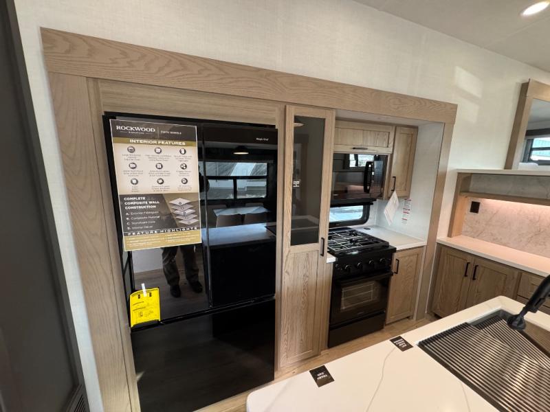 With any Rockwood Signature fifth wheel or travel trailer by Forest River RV, you will enjoy superior construction that includes a fully laminated walkable roof, 6-sided full-aluminum frame, and a painted fiberglass front cap with Clear Coat for added durability. Outside, you'll find a 200W solar panel for off-grid capabilities, slam baggage doors, and Key-Alike lock system for added convenience. Head inside to find soft close roller bearing drawers, roller shades, and residential style gas range. These travel trailer and fifth wheels also feature Goodyear Endurance tires with a tire pressure monitoring system plus Dexter Torflex torsion axles for smooth towing!