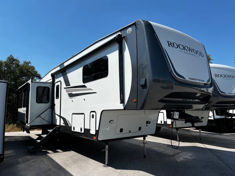 With any Rockwood Signature fifth wheel or travel trailer by Forest River RV, you will enjoy superior construction that includes a fully laminated walkable roof, 6-sided full-aluminum frame, and a painted fiberglass front cap with Clear Coat for added durability. Outside, you'll find a 200W solar panel for off-grid capabilities, slam baggage doors, and Key-Alike lock system for added convenience. Head inside to find soft close roller bearing drawers, roller shades, and residential style gas range. These travel trailer and fifth wheels also feature Goodyear Endurance tires with a tire pressure monitoring system plus Dexter Torflex torsion axles for smooth towing!