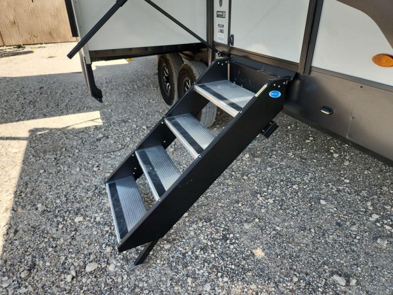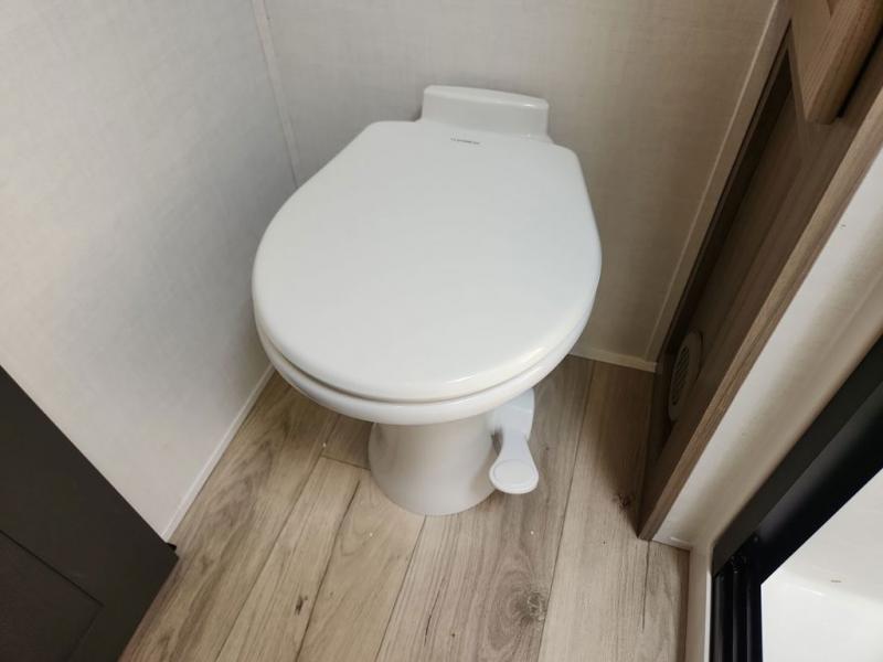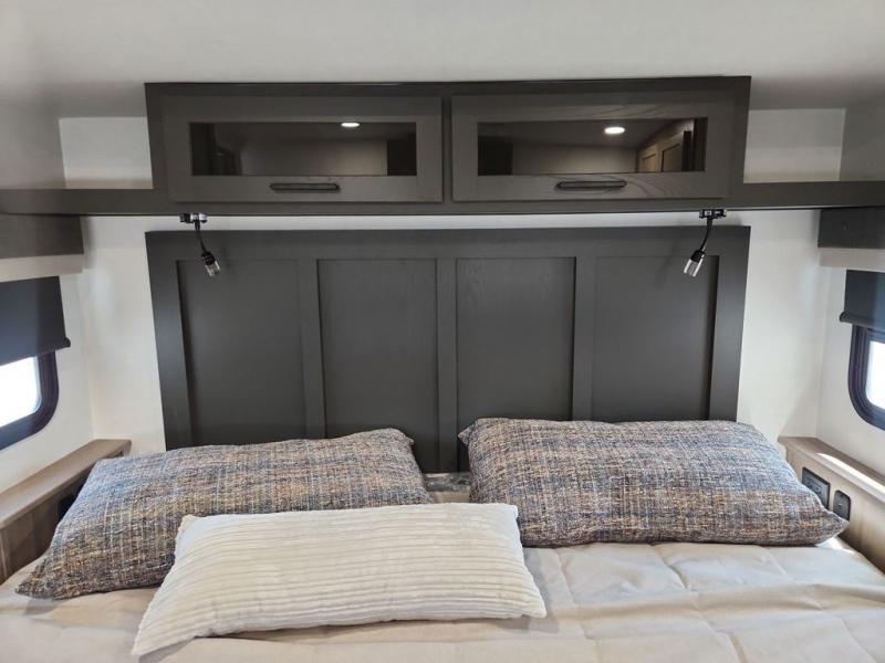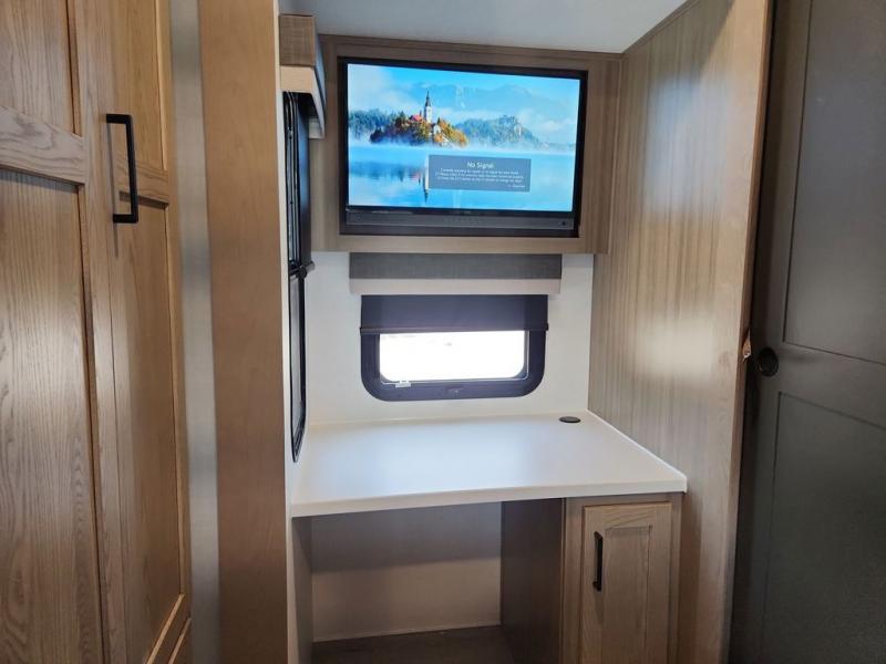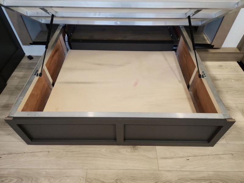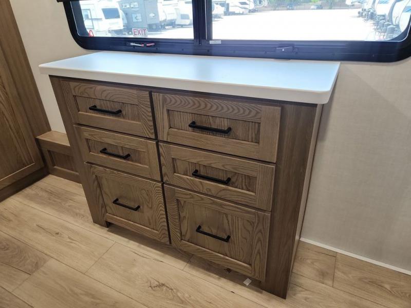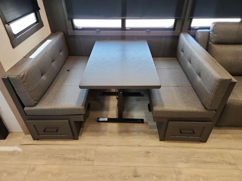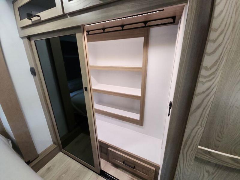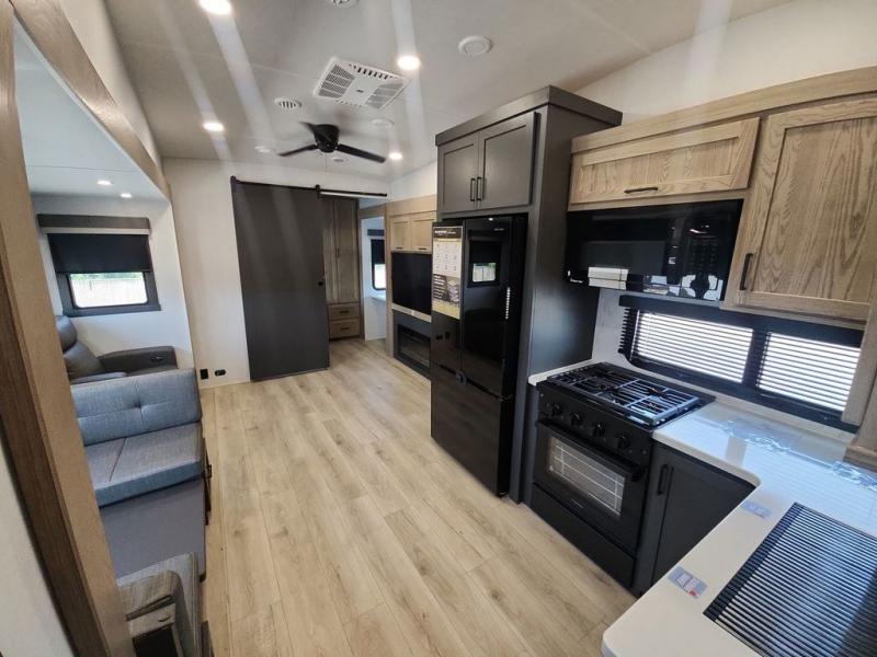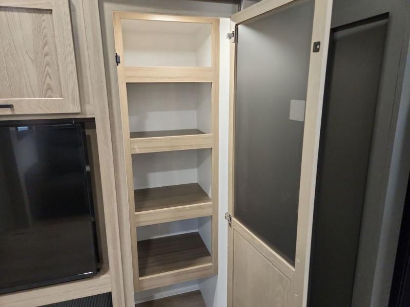 Designed with comfort and practicality in mind, this fifth wheel RV makes extended travel feel just like home. Each room is equipped with two large wardrobes, offering abundant space for clothing and storage this is perfect for families or long getaways with the whole gang. The spacious living and dining area allows everyone to move around freely without feeling cramped. A shower with a built-in seat adds a layer of comfort and accessibility. In the rear bunkhouse, a unique double bunk setup provides extra sleeping space so more friends or family members can join in on the adventure.