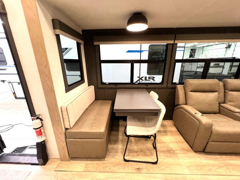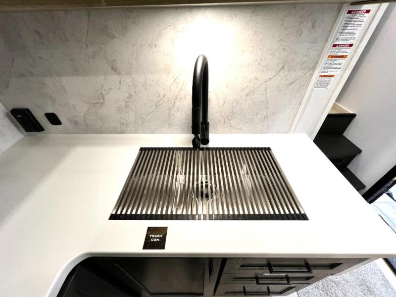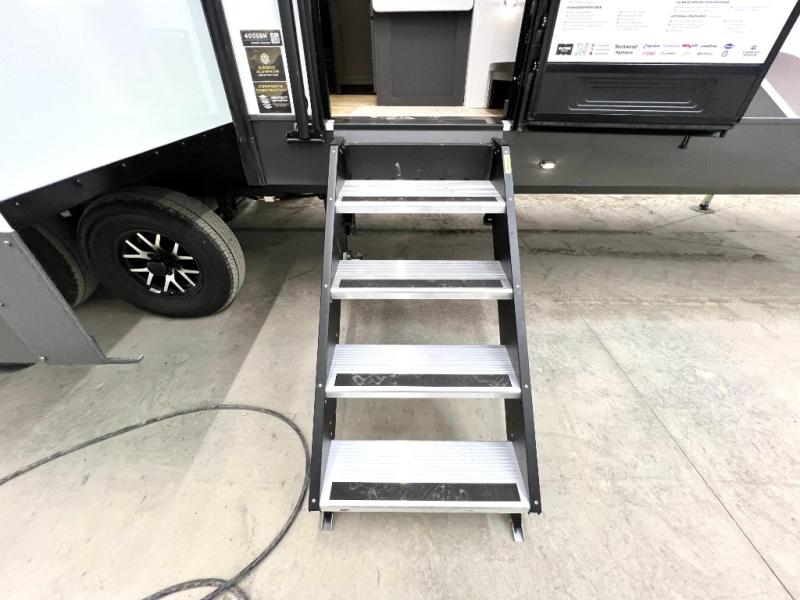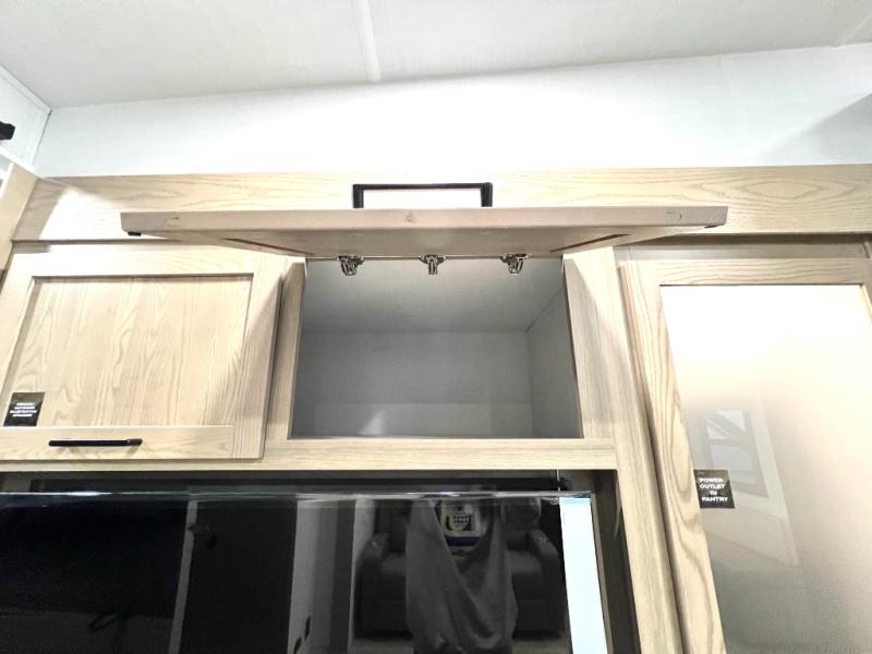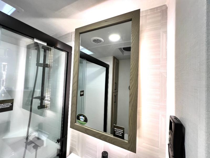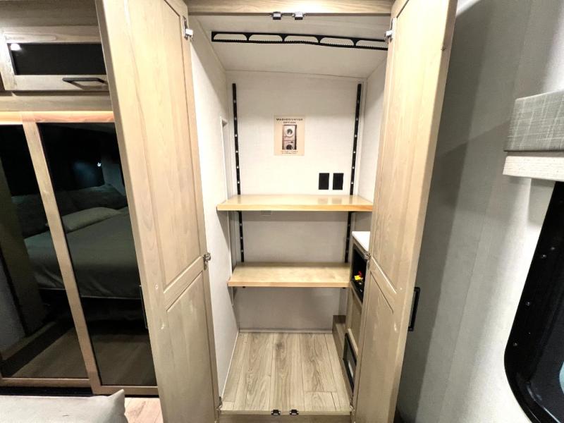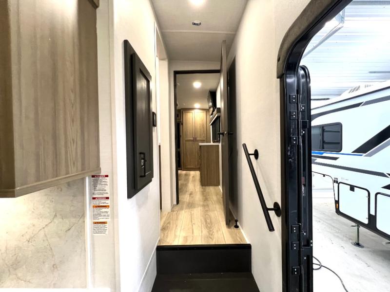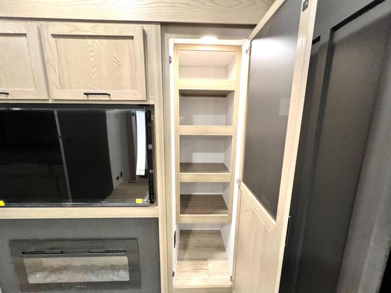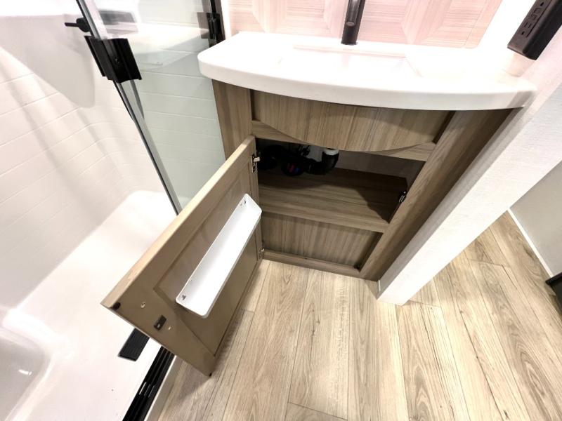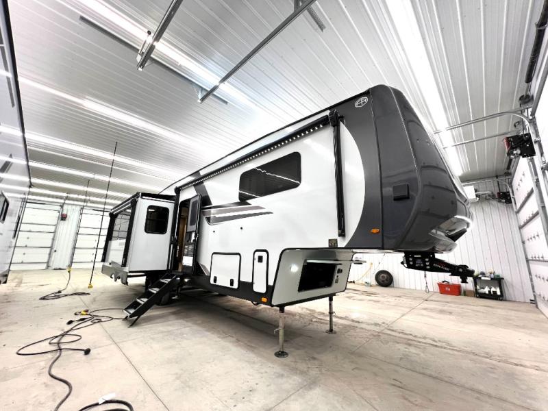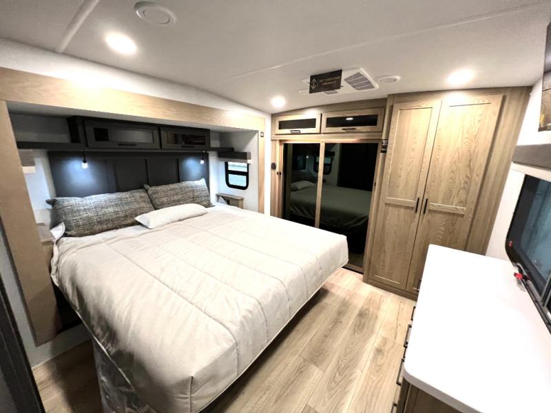 Designed with comfort and practicality in mind, this fifth wheel RV makes extended travel feel just like home. Each room is equipped with two large wardrobes, offering abundant space for clothing and storage this is perfect for families or long getaways with the whole gang. The spacious living and dining area allows everyone to move around freely without feeling cramped. A shower with a built-in seat adds a layer of comfort and accessibility. In the rear bunkhouse, a unique double bunk setup provides extra sleeping space so more friends or family members can join in on the adventure.
