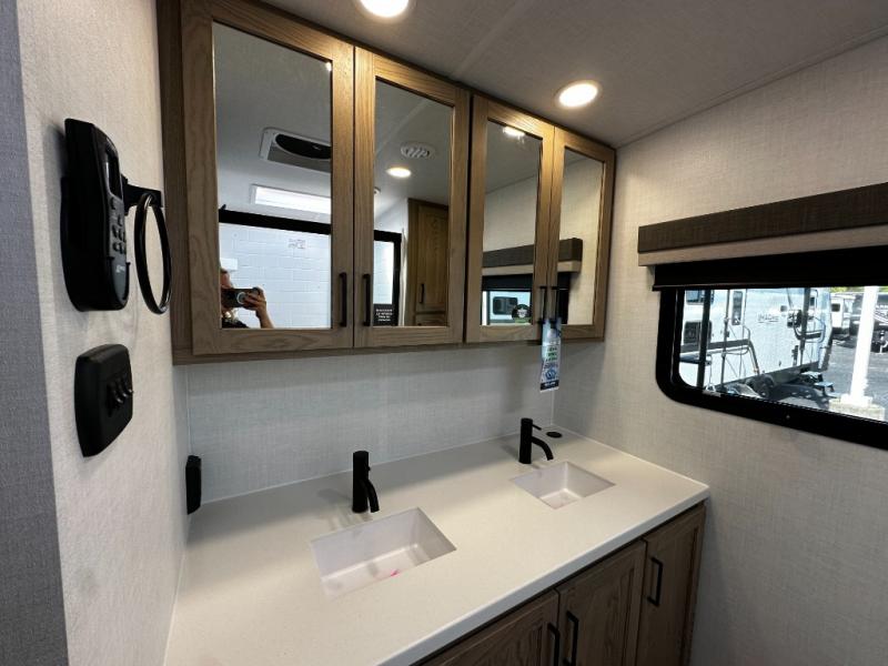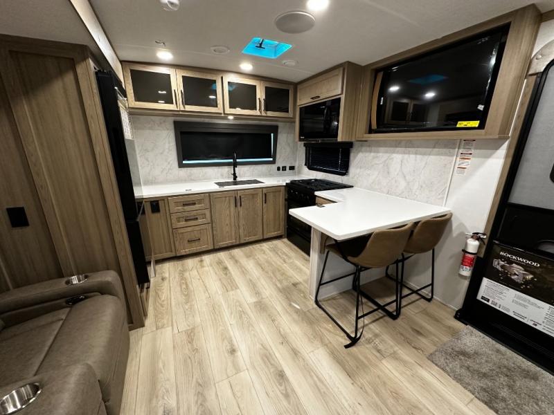 Step inside the Rockwood Signature 8263MBR and discover a living space built for both comfort and functionality. The master bedroom offers a serene retreat for restful nights, while the full kitchen comes equipped with modern appliances, generous counter space, and clever storage solutions for effortless meal preparation. The open-concept living area is perfect for relaxing, entertaining, or enjoying quality time with family and friends. Every detail, from premium finishes to durable materials, is designed to ensure reliability and long-lasting enjoyment on every trip.