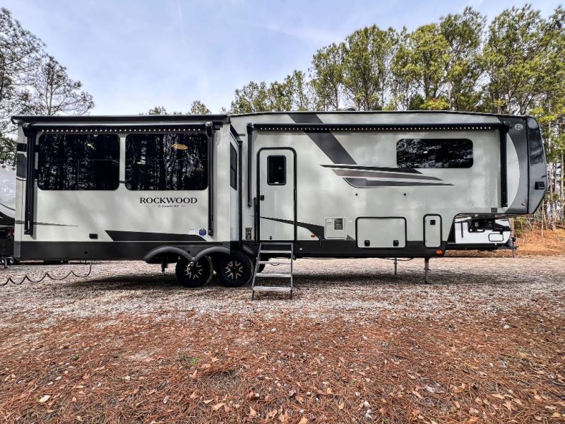 With any Rockwood Signature fifth wheel or travel trailer by Forest River RV, you will enjoy superior construction that includes a fully laminated walkable roof, 6-sided full-aluminum frame, and a painted fiberglass front cap with Clear Coat for added durability. Outside, you'll find a 200W solar panel for off-grid capabilities, slam baggage doors, and Key-Alike lock system for added convenience. Head inside to find soft close roller bearing drawers, roller shades, and residential style gas range. These travel trailer and fifth wheels also feature Goodyear Endurance tires with a tire pressure monitoring system plus Dexter Torflex torsion axles for smooth towing!
