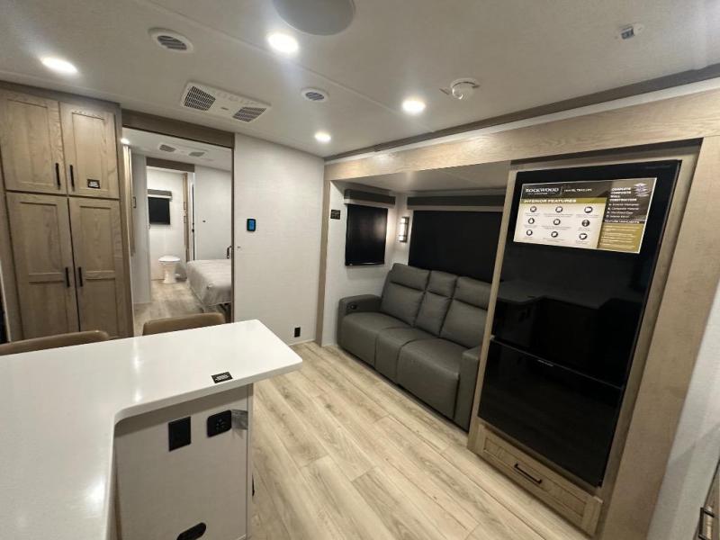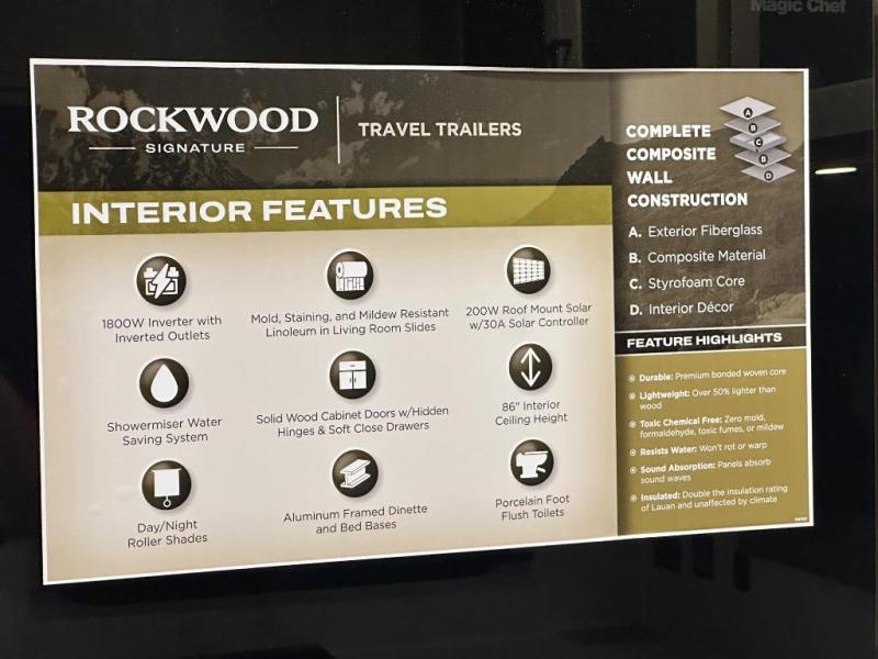 With any Rockwood Signature fifth wheel or travel trailer by Forest River RV, you will enjoy superior construction that includes a fully laminated walkable roof, 6-sided full-aluminum frame, and a painted fiberglass front cap with Clear Coat for added durability. Outside, you'll find a 200W solar panel for off-grid capabilities, slam baggage doors, and Key-Alike lock system for added convenience. Head inside to find soft close roller bearing drawers, roller shades, and residential style gas range. These travel trailer and fifth wheels also feature Goodyear Endurance tires with a tire pressure monitoring system plus Dexter Torflex torsion axles for smooth towing!