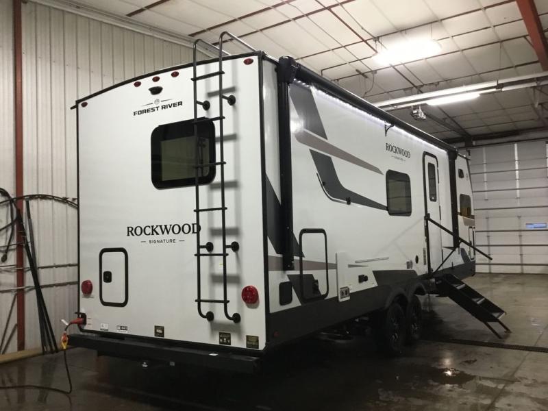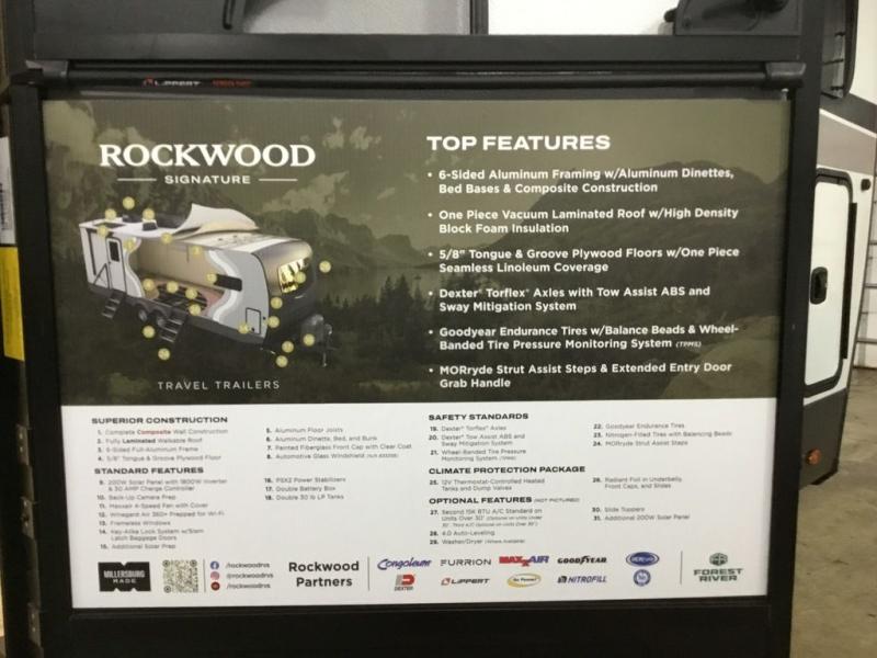 With any Rockwood Signature fifth wheel or travel trailer by Forest River RV, you will enjoy superior construction that includes a fully laminated walkable roof, 6-sided full-aluminum frame, and a painted fiberglass front cap with Clear Coat for added durability. Outside, you'll find a 200W solar panel for off-grid capabilities, slam baggage doors, and Key-Alike lock system for added convenience. Head inside to find soft close roller bearing drawers, roller shades, and residential style gas range. These travel trailer and fifth wheels also feature Goodyear Endurance tires with a tire pressure monitoring system plus Dexter Torflex torsion axles for smooth towing!