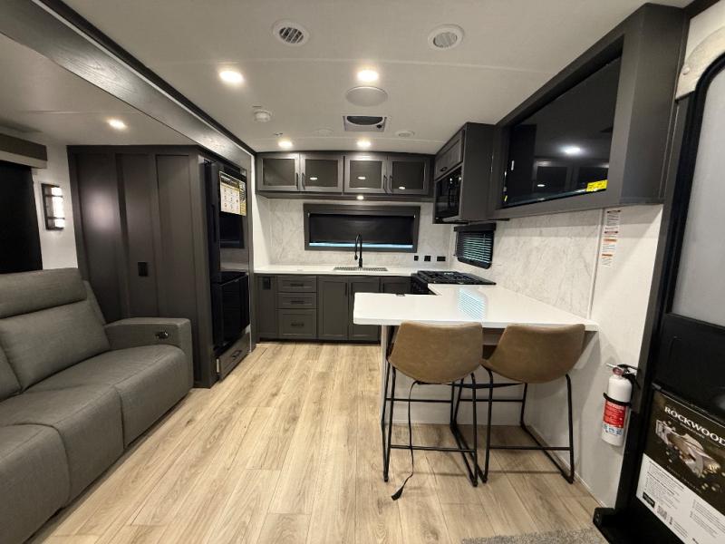 With any Rockwood Signature fifth wheel or travel trailer by Forest River RV, you will enjoy superior construction that includes a fully laminated walkable roof, 6-sided full-aluminum frame, and a painted fiberglass front cap with Clear Coat for added durability. Outside, you'll find a 200W solar panel for off-grid capabilities, slam baggage doors, and Key-Alike lock system for added convenience. Head inside to find soft close roller bearing drawers, roller shades, and residential style gas range. These travel trailer and fifth wheels also feature Goodyear Endurance tires with a tire pressure monitoring system plus Dexter Torflex torsion axles for smooth towing!