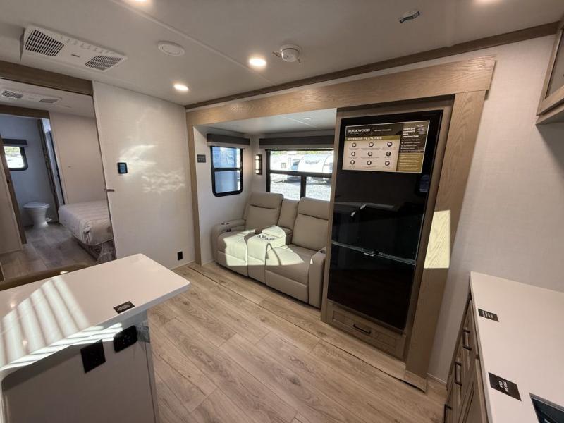 With any Rockwood Signature fifth wheel or travel trailer by Forest River RV, you will enjoy superior construction that includes a fully laminated walkable roof, 6-sided full-aluminum frame, and a painted fiberglass front cap with Clear Coat for added durability. Outside, you'll find a 200W solar panel for off-grid capabilities, slam baggage doors, and Key-Alike lock system for added convenience. Head inside to find soft close roller bearing drawers, roller shades, and residential style gas range. These travel trailer and fifth wheels also feature Goodyear Endurance tires with a tire pressure monitoring system plus Dexter Torflex torsion axles for smooth towing!