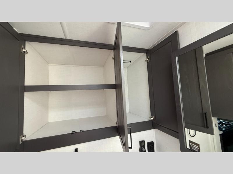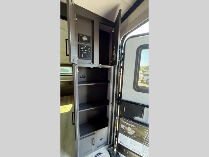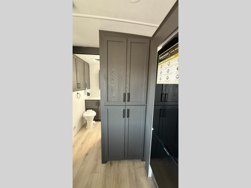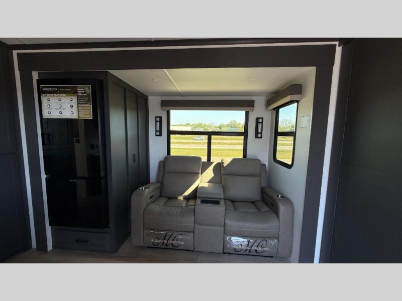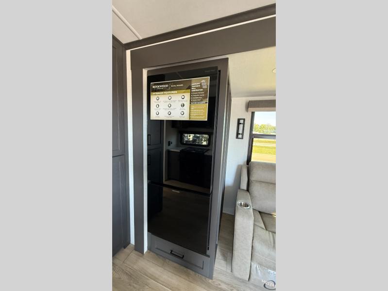 With any Rockwood Signature fifth wheel or travel trailer by Forest River RV, you will enjoy superior construction that includes laminated white fiberglass sidewalls, a radius roof with vaulted interior ceilings, plus radiant foil insulation and an enclosed underbelly for use in all types of weather. Some convenient exterior features include Keyed Alike locks, a rear ladder, a 200W solar panel, and a tire pressure monitor system with a monitor for added safety. The interior offers a One Touch OneControl panel with WeRV app control, for lights, awning, slides, water heater and more, and the Air 360+ omnidirectional antenna with WiFi prep lets you work while away from home if needed. You will also appreciate the interior vaulted ceilings, residential soft close doors and drawers, solid surface kitchen countertops, and designer kitchen backsplash!