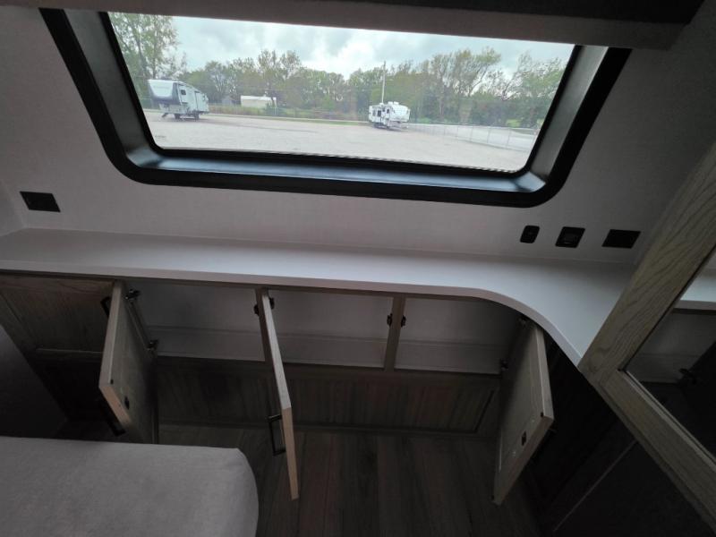 With any Rockwood Signature fifth wheel or travel trailer by Forest River RV, you will enjoy superior construction that includes laminated white fiberglass sidewalls, a radius roof with vaulted interior ceilings, plus radiant foil insulation and an enclosed underbelly for use in all types of weather. Some convenient exterior features include Keyed Alike locks, a rear ladder, a 200W solar panel, and a tire pressure monitor system with a monitor for added safety. The interior offers a One Touch OneControl panel with WeRV app control, for lights, awning, slides, water heater and more, and the Air 360+ omnidirectional antenna with WiFi prep lets you work while away from home if needed. You will also appreciate the interior vaulted ceilings, residential soft close doors and drawers, solid surface kitchen countertops, and designer kitchen backsplash!