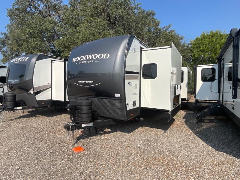 With any Rockwood Signature fifth wheel or travel trailer by Forest River RV, you will enjoy superior construction that includes a fully laminated walkable roof, 6-sided full-aluminum frame, and a painted fiberglass front cap with Clear Coat for added durability. Outside, you'll find a 200W solar panel for off-grid capabilities, slam baggage doors, and Key-Alike lock system for added convenience. Head inside to find soft close roller bearing drawers, roller shades, and residential style gas range. These travel trailer and fifth wheels also feature Goodyear Endurance tires with a tire pressure monitoring system plus Dexter Torflex torsion axles for smooth towing!