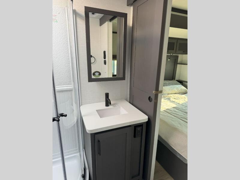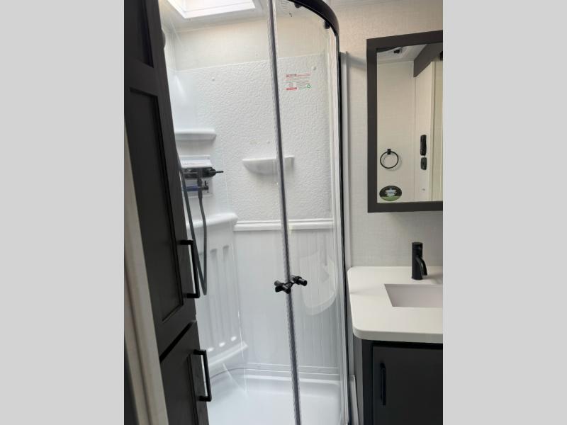 With any Rockwood Signature fifth wheel or travel trailer by Forest River RV, you will enjoy superior construction that includes laminated white fiberglass sidewalls, a radius roof with vaulted interior ceilings, plus radiant foil insulation and an enclosed underbelly for use in all types of weather. Some convenient exterior features include Keyed Alike locks, a rear ladder, a 200W solar panel, and a tire pressure monitor system with a monitor for added safety. The interior offers a One Touch OneControl panel with WeRV app control, for lights, awning, slides, water heater and more, and the Air 360+ omnidirectional antenna with WiFi prep lets you work while away from home if needed. You will also appreciate the interior vaulted ceilings, residential soft close doors and drawers, solid surface kitchen countertops, and designer kitchen backsplash!